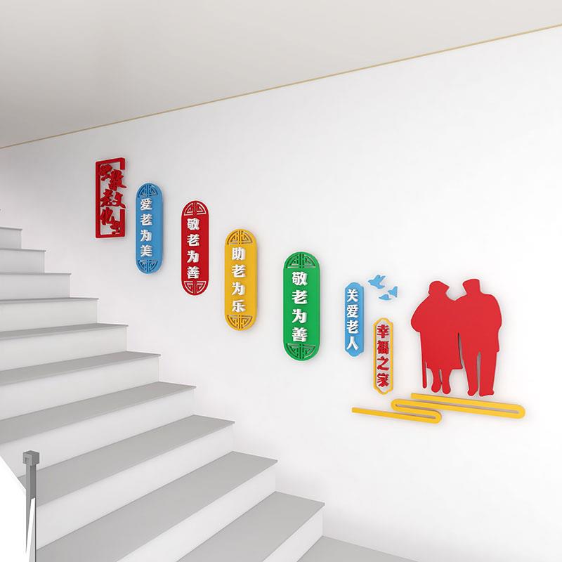 敬养老院楼梯墙面装饰老年活动中心文化墙贴社区关爱老人宣传标语