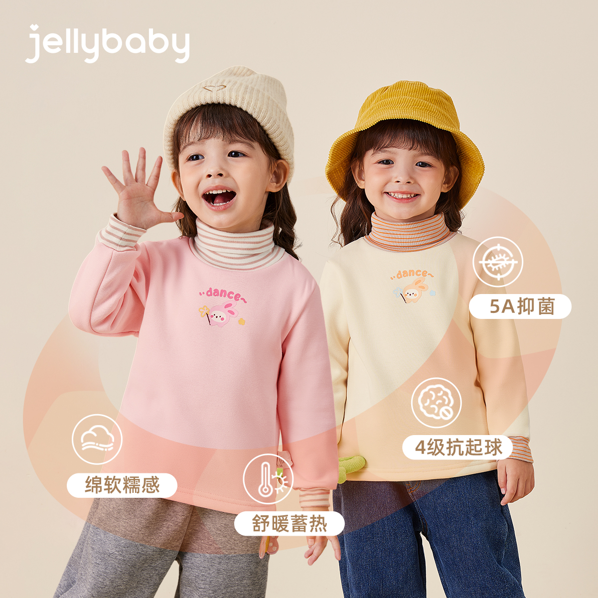 [抗静电抑菌]儿童长袖T恤秋冬女童条纹高领宝宝加绒上衣6男童衣服 - jellybaby旗舰店