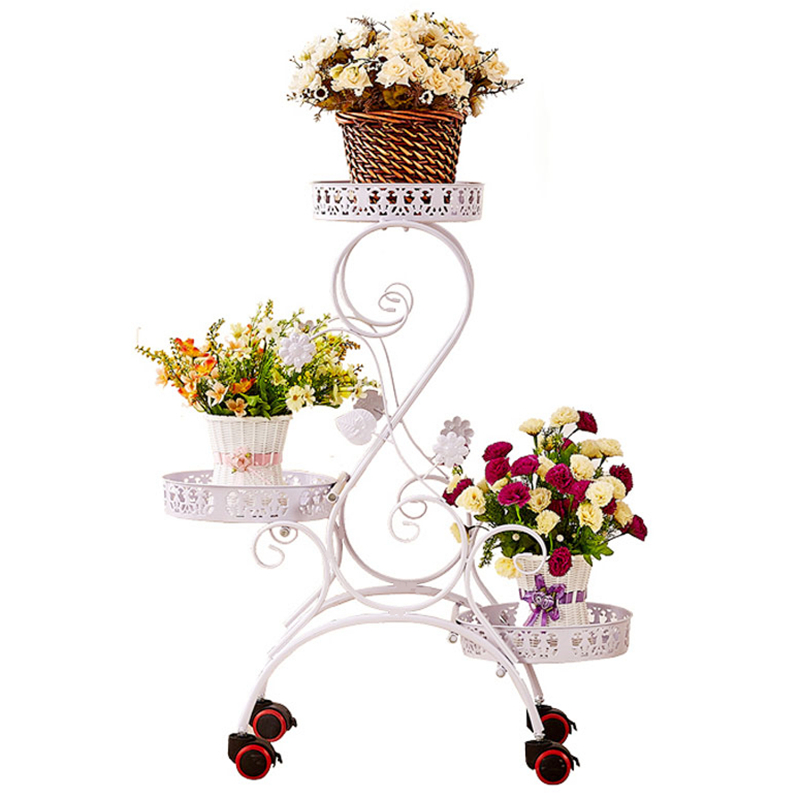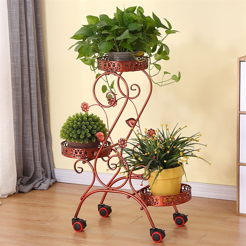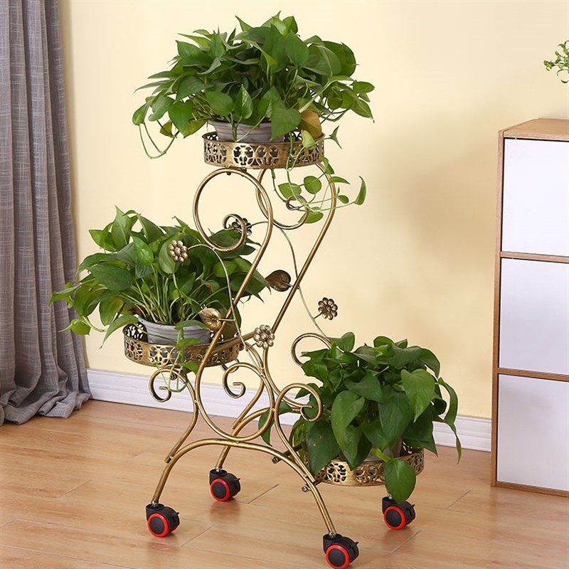 欧式铁艺多层可移动推拉花架子带轮落地式花盆架室内客厅阳台花架 - 天河鞋履馆