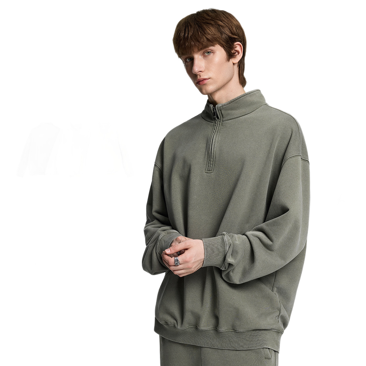 潮牌秋冬新款立领半拉链卫衣男炒雪花复古宽松休闲卫衣男 - 卡尔潮流男装