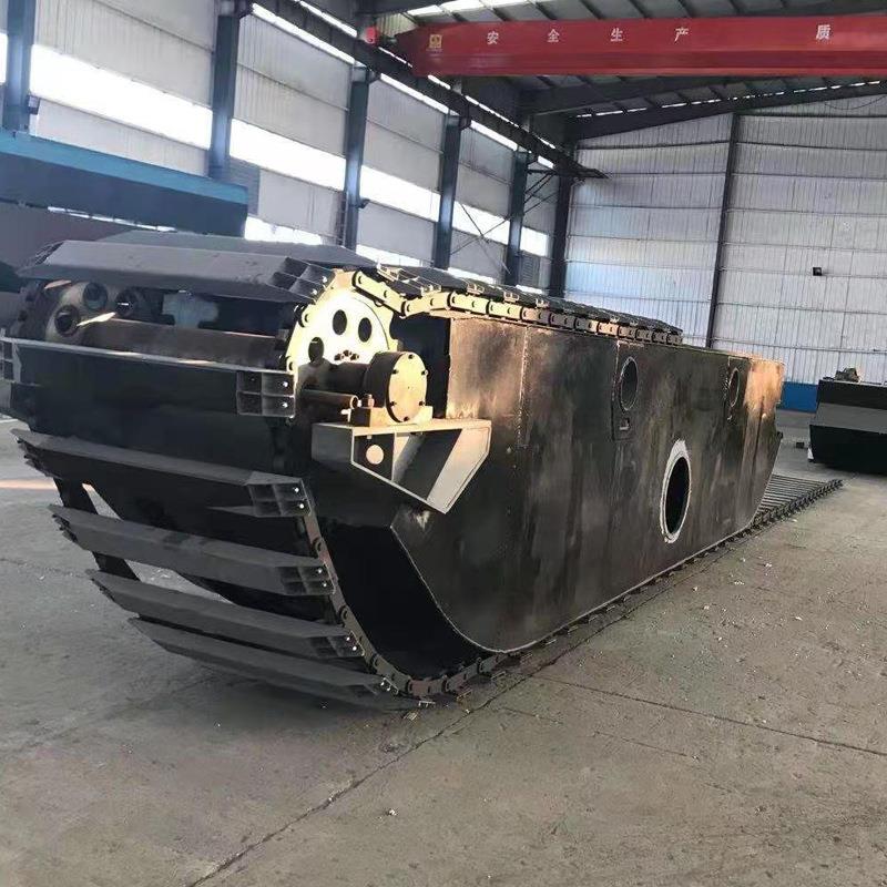 水路两栖挖机浮筒厂家出售运输车履带浮箱供应浮箱底盘