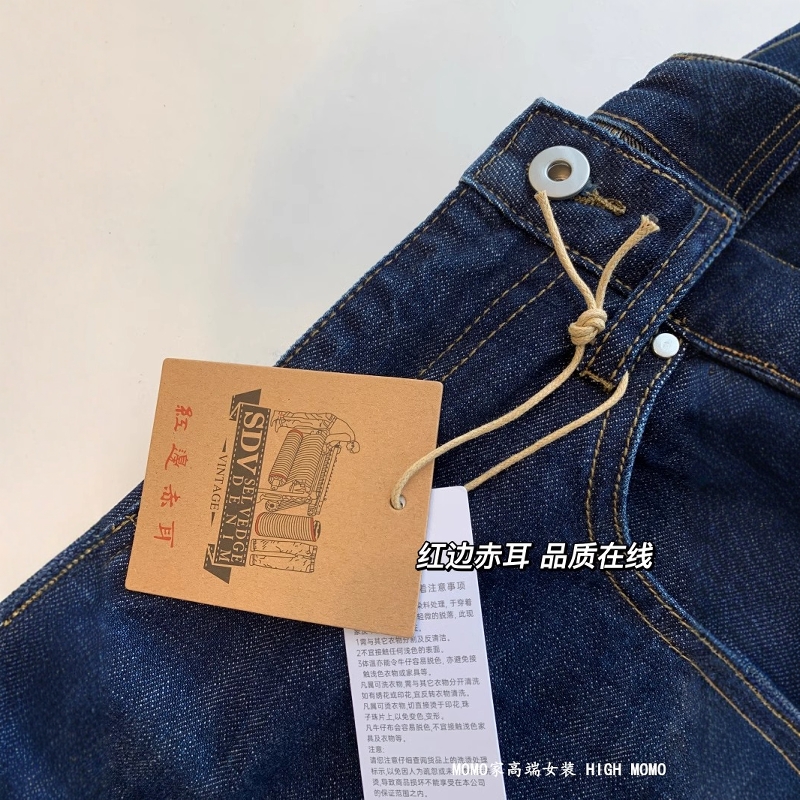 您的位置:他他商城  >  女装  >  超显腿直 丹宁原色深蓝色全棉红翻边高腰显瘦赤耳直筒牛仔裤女秋