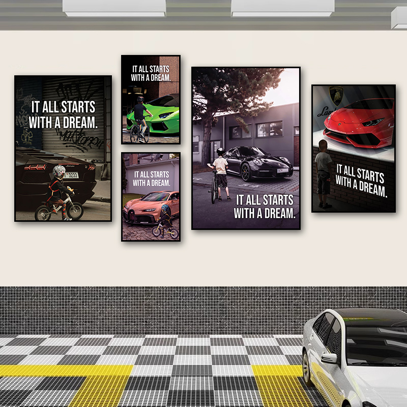 汽车挂画4s美容维修店接待室兰博基尼豪车装饰画跑车赛车主题壁画 - 多鑫画廊