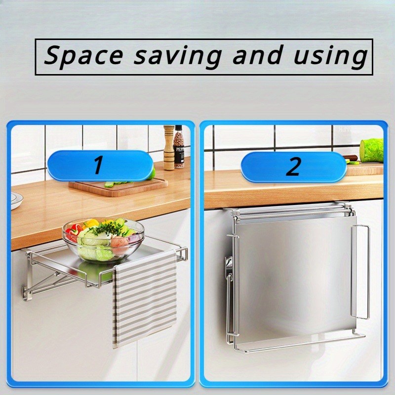 不锈钢可折叠厨房台面置物架 悬挂F橱柜门桌板延展收纳隔板辅助台 - 千隆园日用品