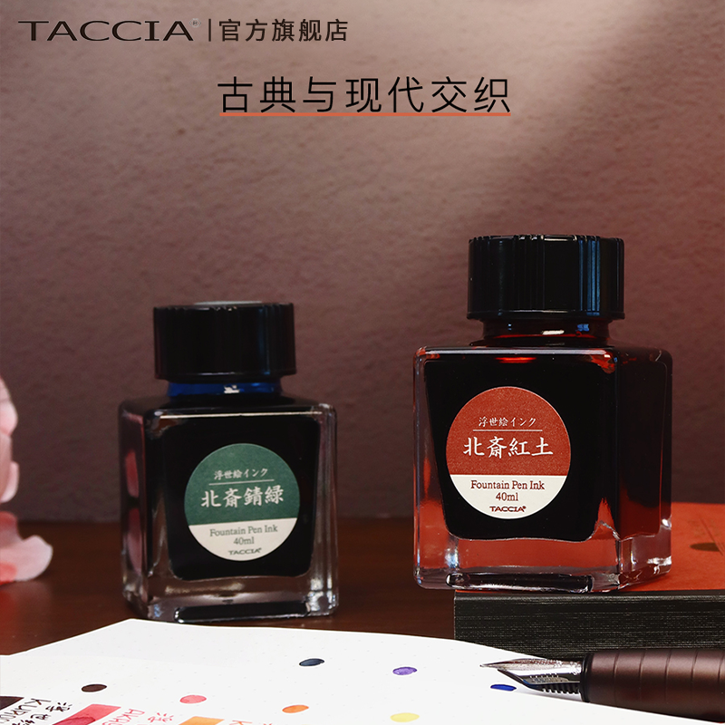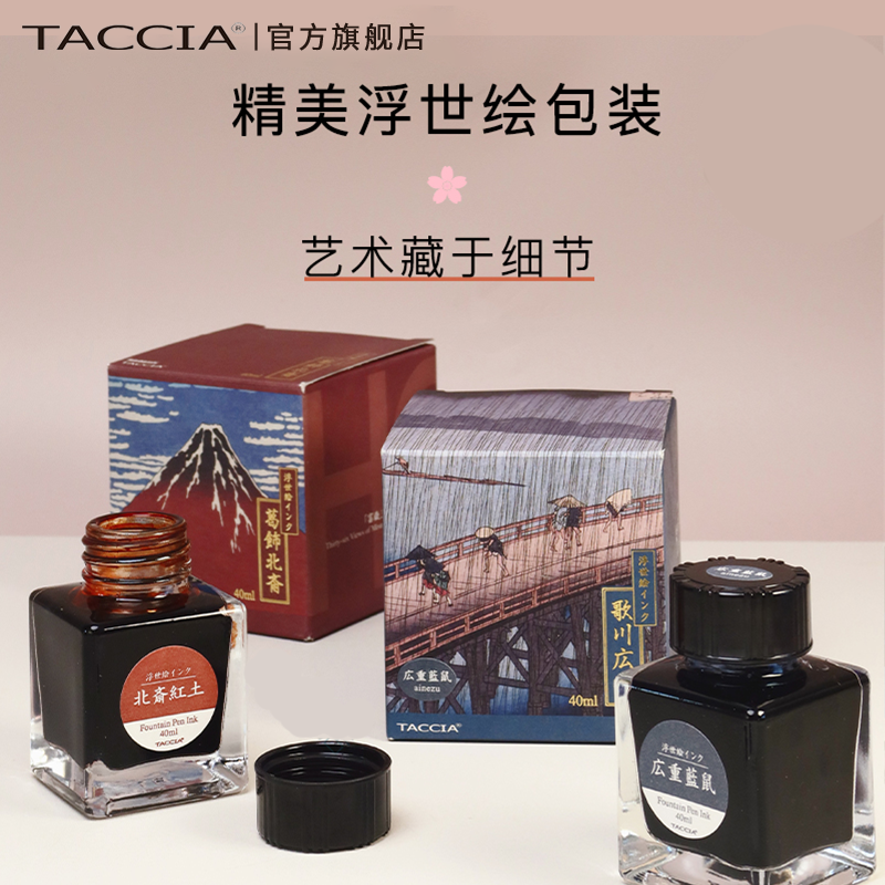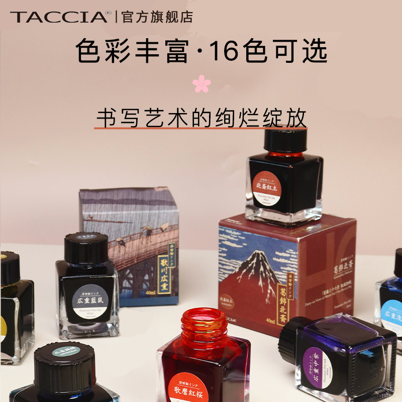 TACCIA仲林 日本浮世绘墨水非碳素彩墨钢笔墨水蘸水笔用40ml大容量不堵笔艺术彩色墨水16色红黑流畅 - TACCIA旗舰店