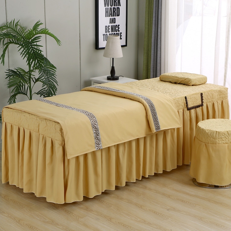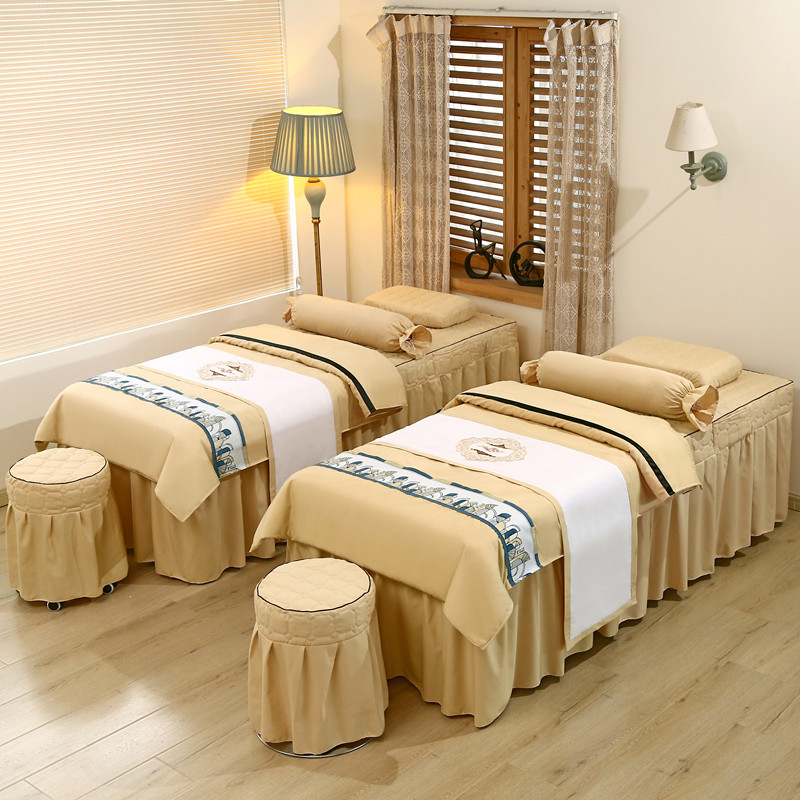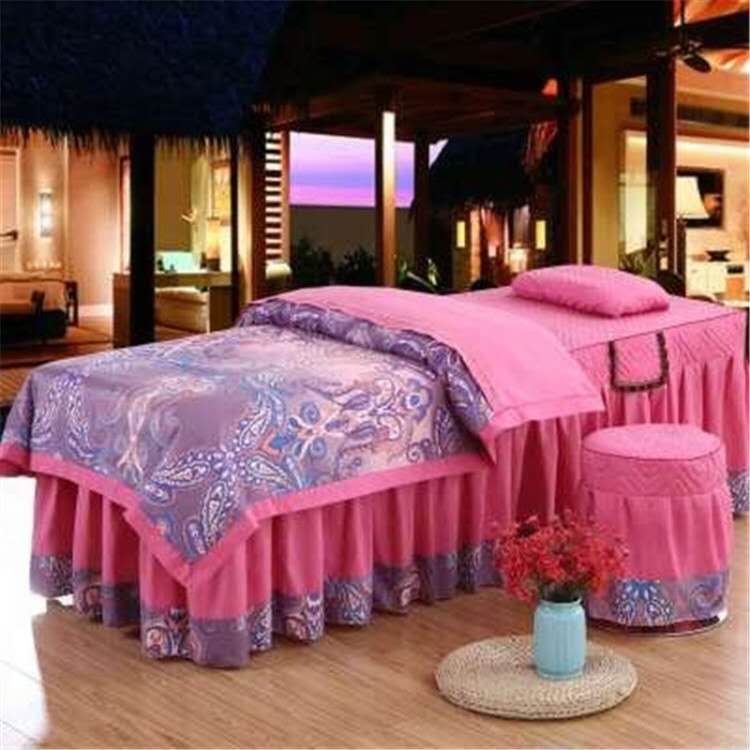美容院床罩四件套SPA高档按摩夹棉加厚理疗天蓝色可定做无洞床罩 - 相守相依家纺