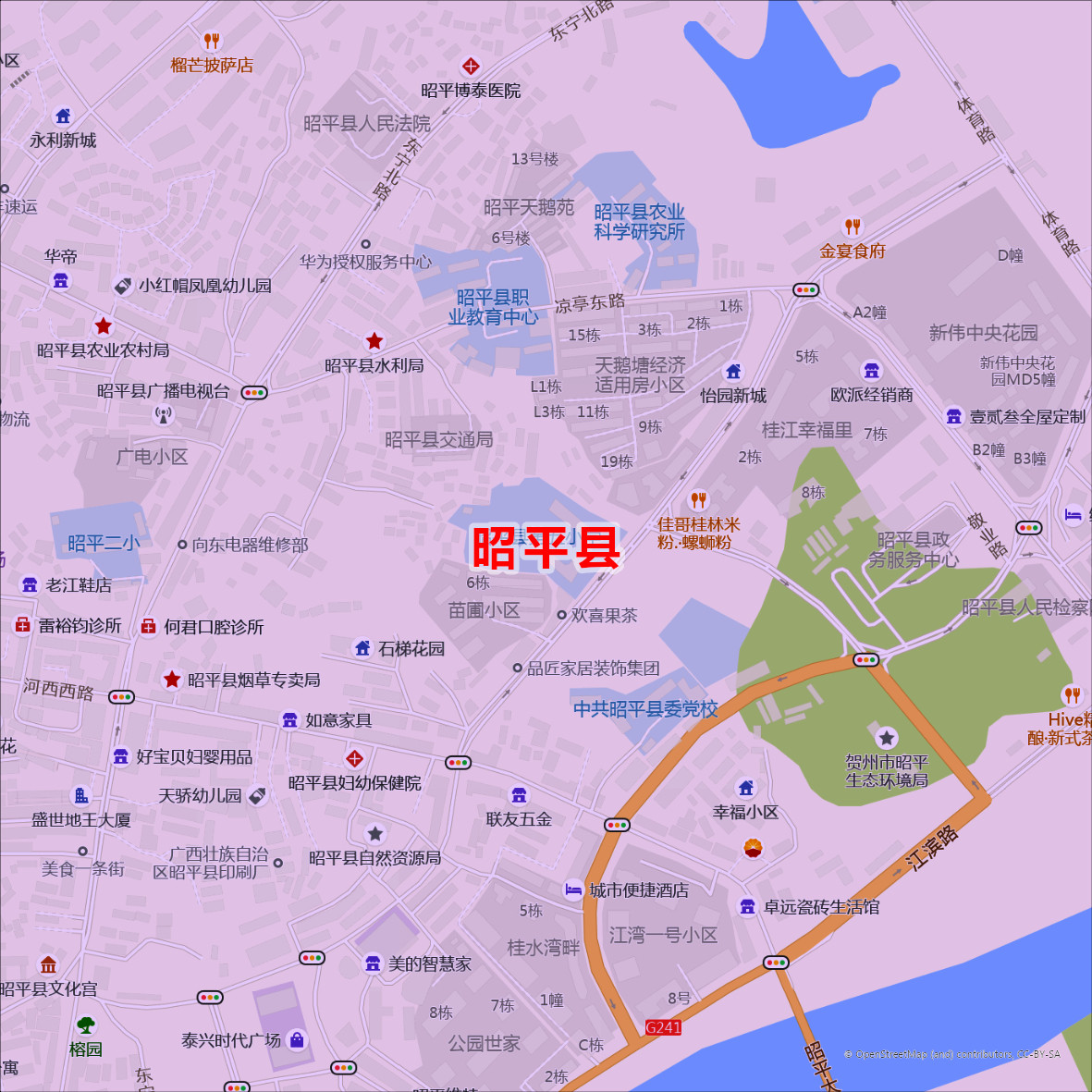 昭平县城区商圈地区图高清可贴可挂磁性办公会议室书房