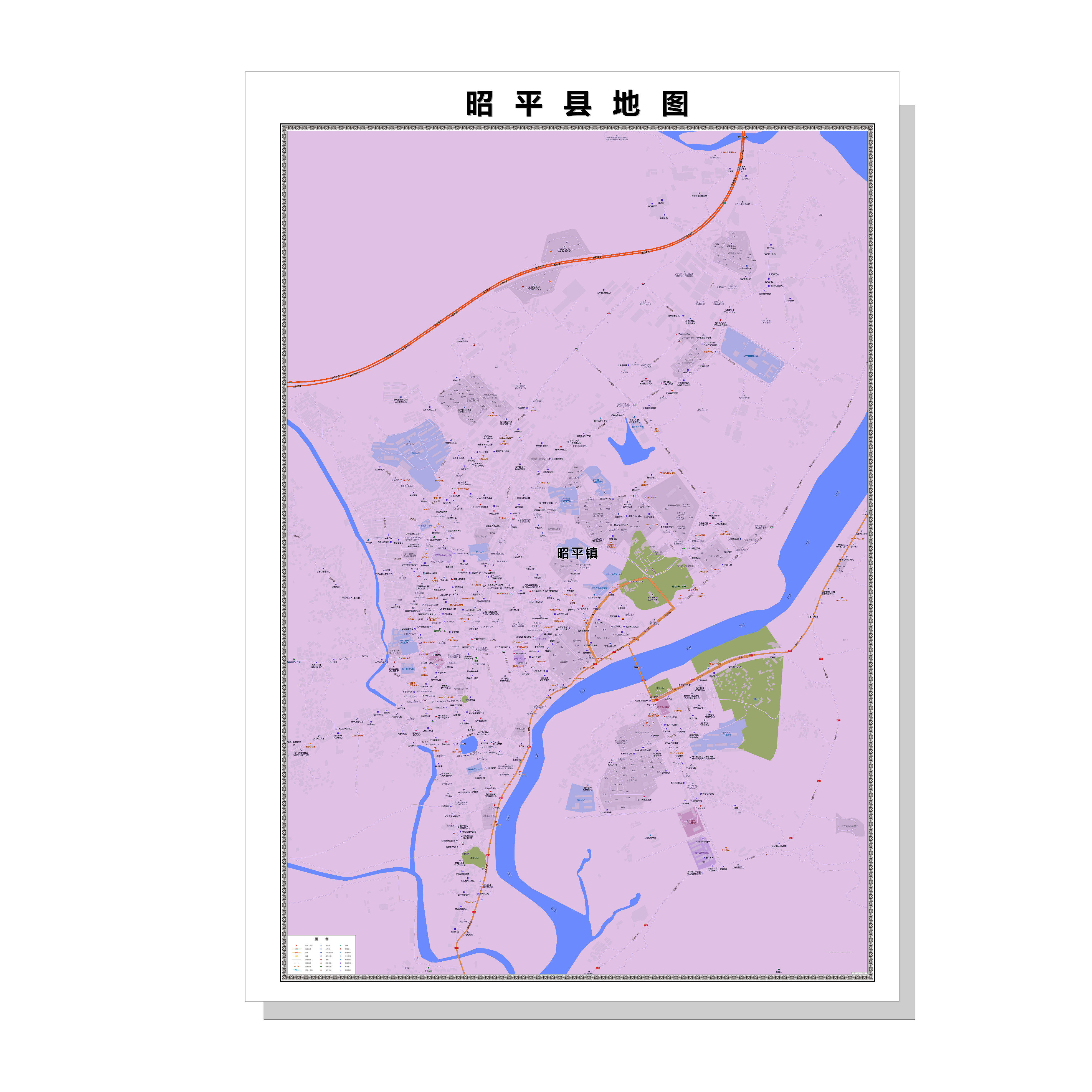 昭平县城区商圈地区图高清可贴可挂磁性办公会议室书房 - 悦晨地图装饰画