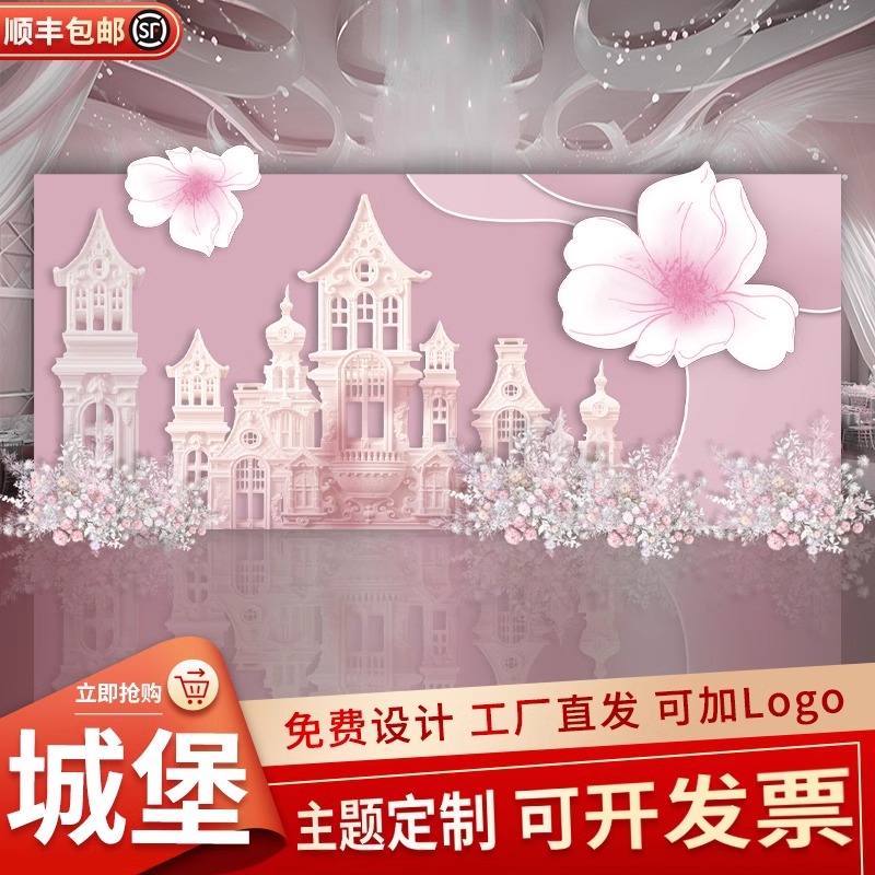 订婚宴结婚回门生日宴粉色城堡酒店现场景布置装饰背景墙定制kt板 - 喜成亲旗舰店