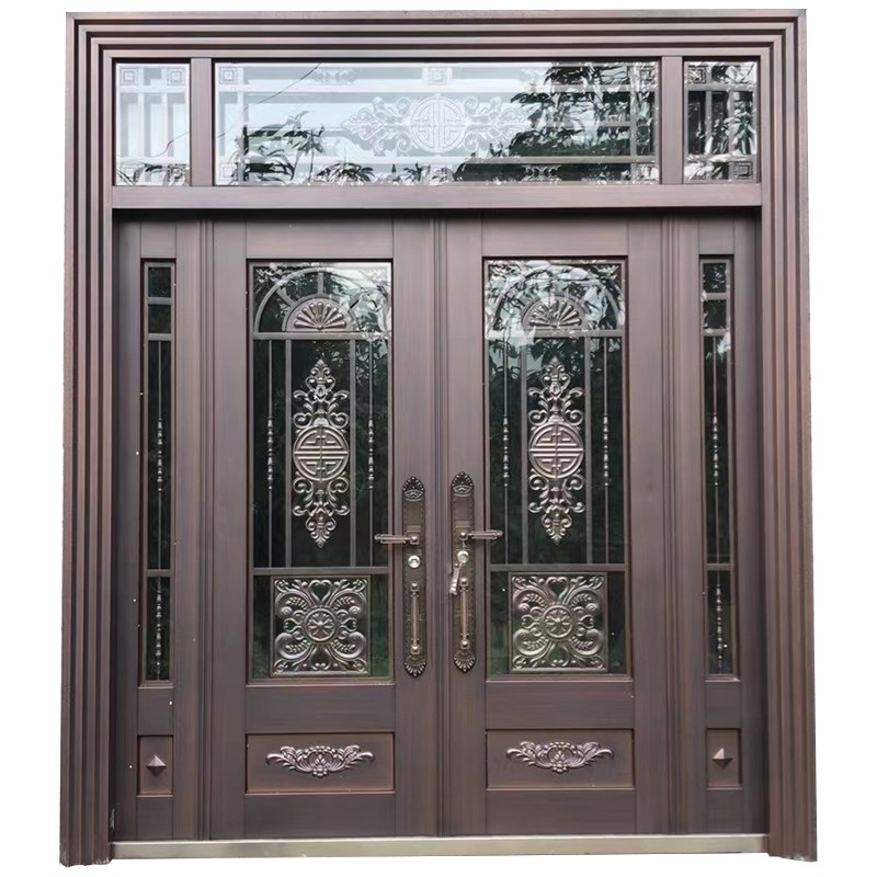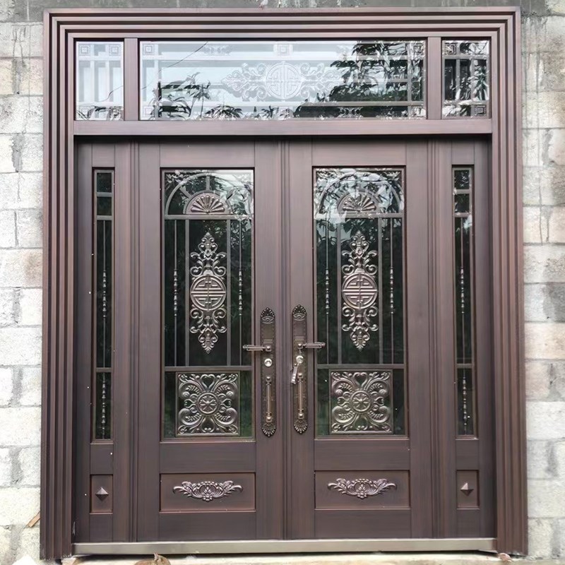 锌合金别墅玻璃大门双开门乡村入户农村自建房进户铜门防盗门家用