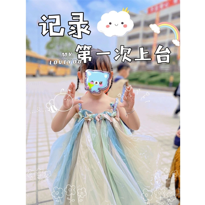 儿童环保时装秀服装女童幼儿园亲子走秀裙子手工创意塑料袋表演服 - 艾菲创意工坊