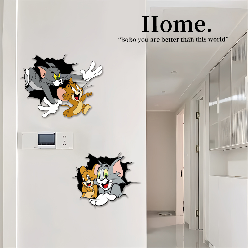 猫和老鼠补洞贴可爱卡通卧室客厅墙面窟窿美化装饰划痕遮丑盖贴画 - Y2K宝藏阁