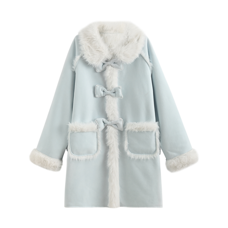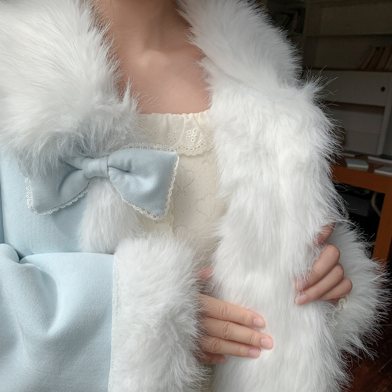 森女部落甜美风设计感毛绒宽松外套女拼接娃娃领宽松百搭大衣冬季 - 森女部落SNBL
