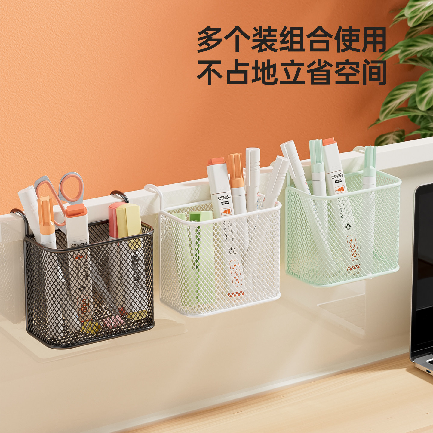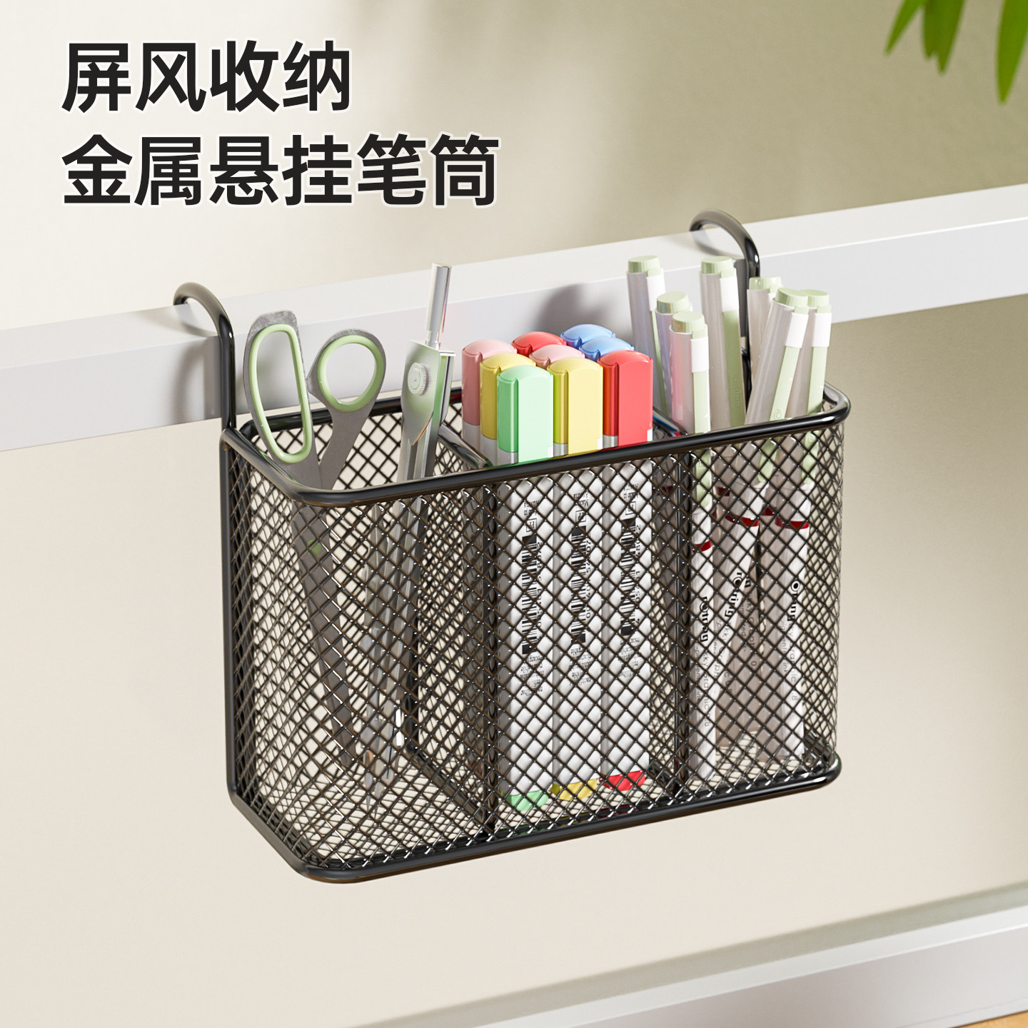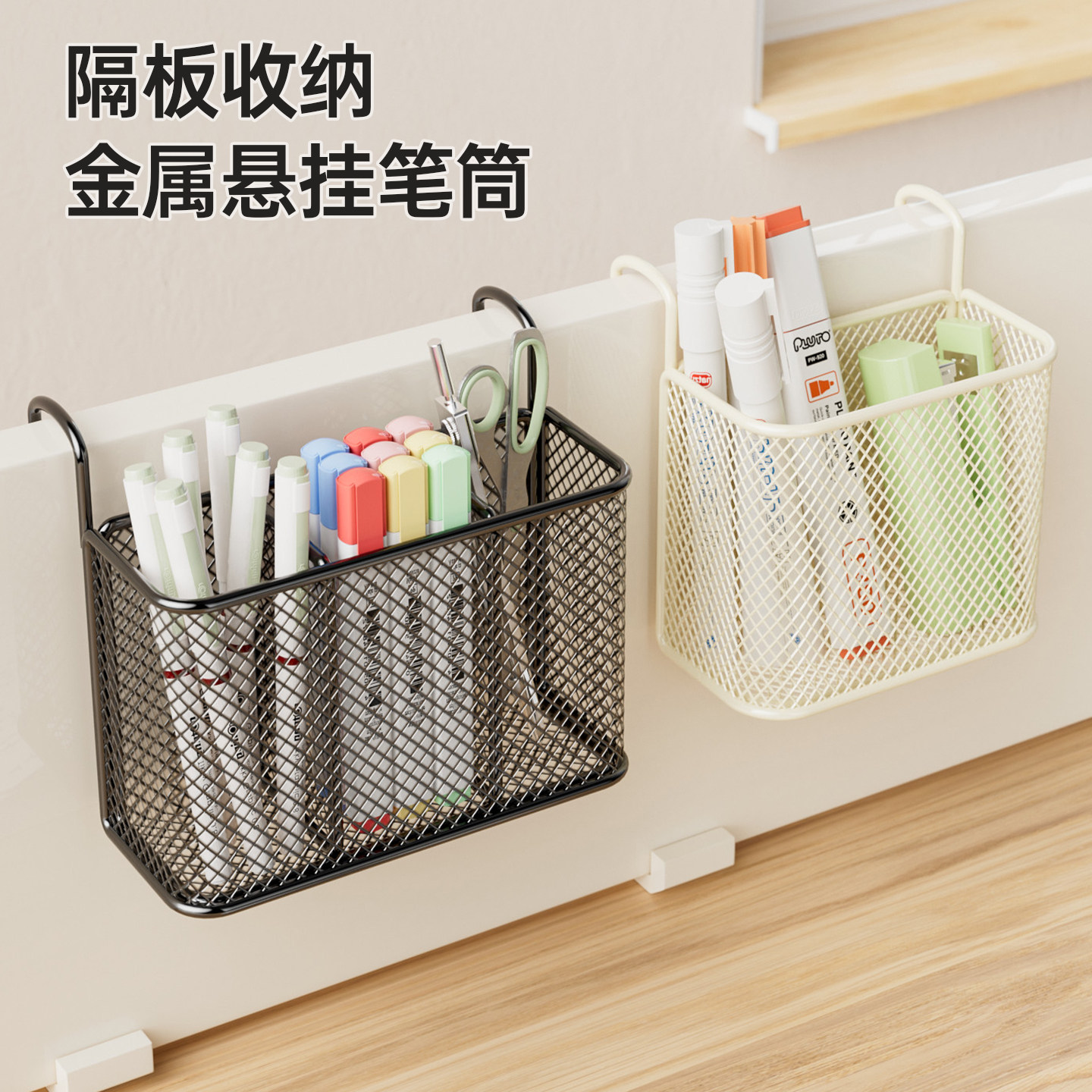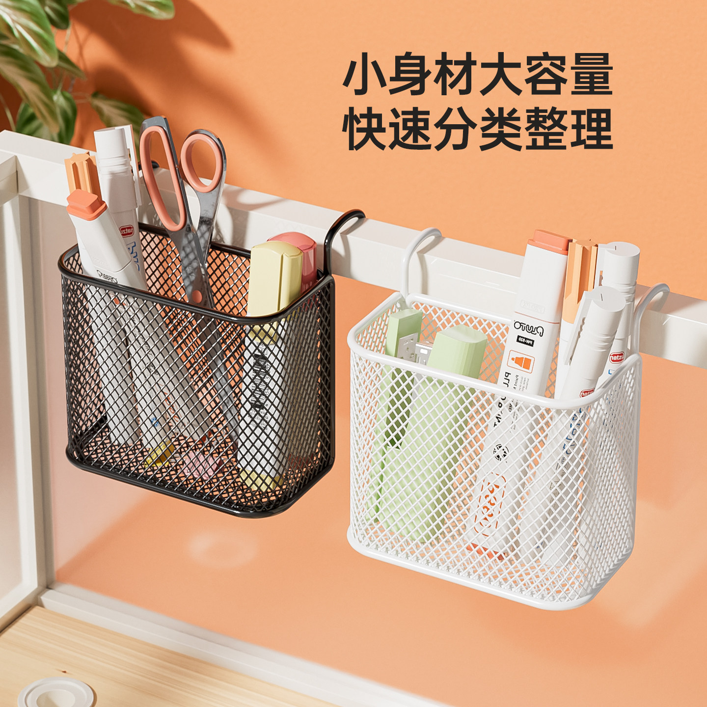 办公桌隔板挂篮悬挂式收纳笔筒办公室文具收纳盒宿舍神器床边储物 - 欧赛办公