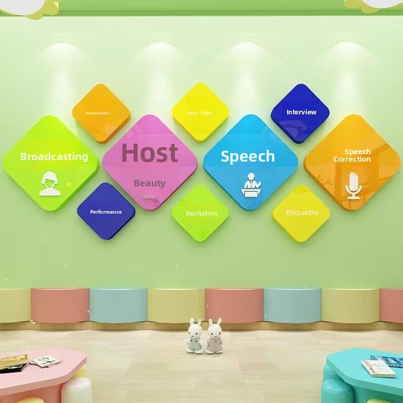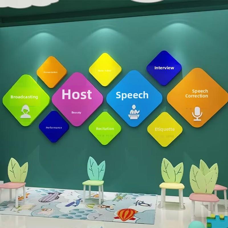 口才教室布置文化装饰舞台背景播音小主持人墙面贴纸艺术培训机构