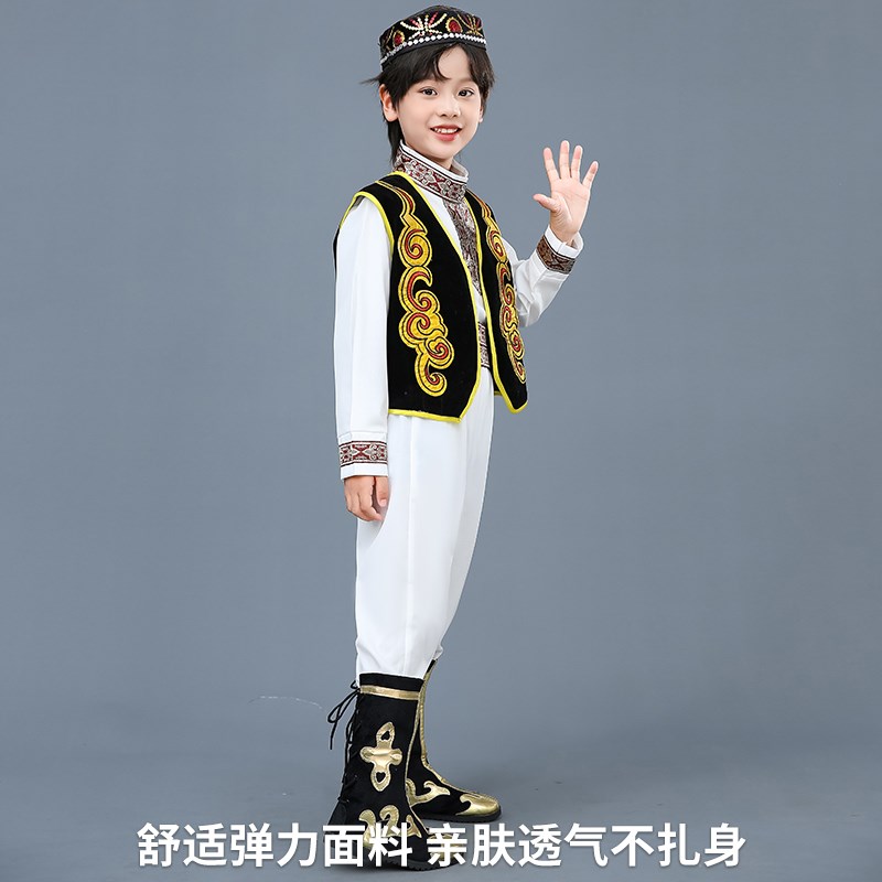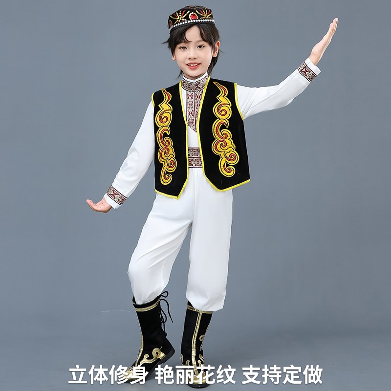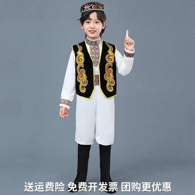 速发维吾尔族回男儿童饰童新疆舞蹈演出服服族塔塔尔民族哈萨克族 - 咖茗商贸