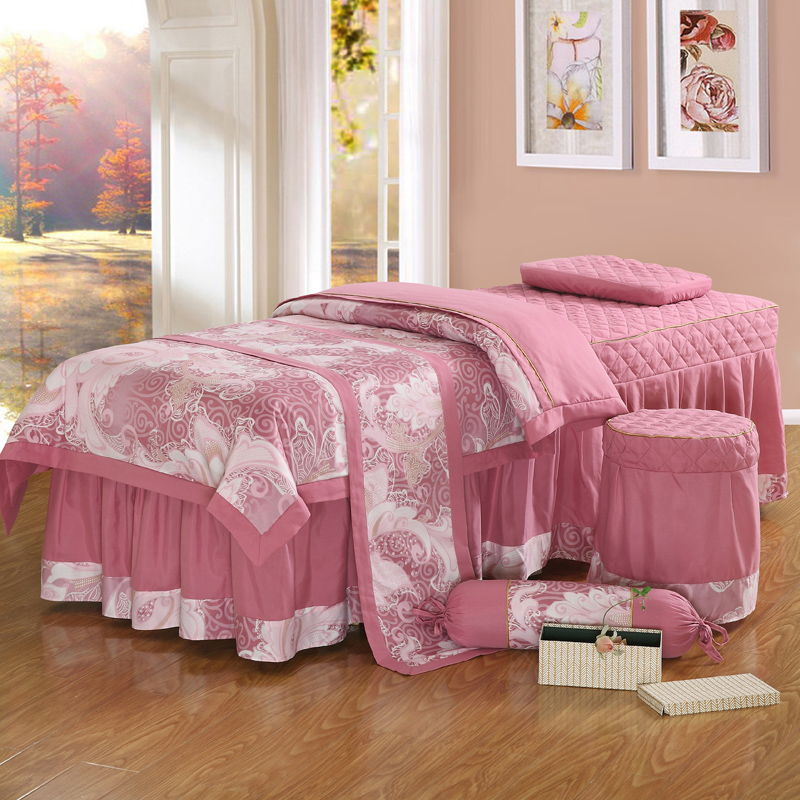 美容床罩四件套亲肤棉欧式美容院美体美容熏蒸按T摩床罩套可定制 - 美夏馆日用品
