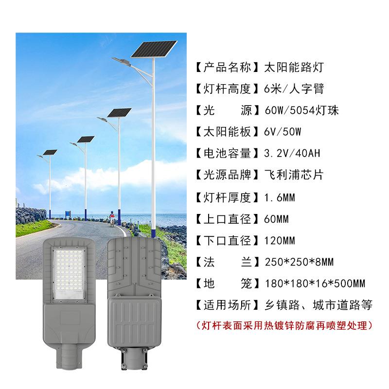 6米人字臂全套太阳能路灯60W新农村市政工程道路照明灯厂家