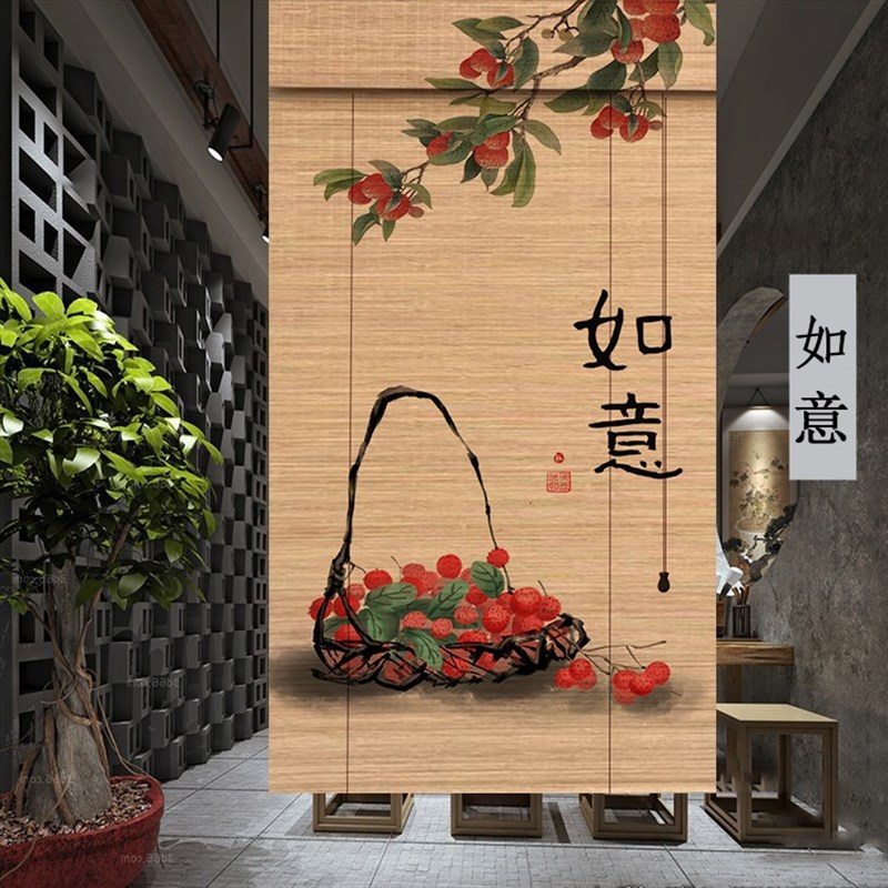 高档头层竹丝碳化印花竹r帘窗帘卷帘隔断遮光门帘中日式暖居竹挂