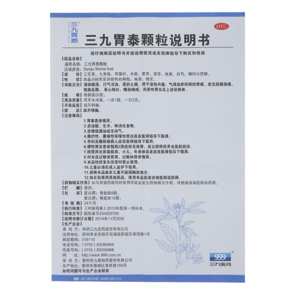 999 三九胃泰颗粒冲剂20g*6袋/盒消炎止痛理气健胃浅表糜烂性胃炎 - 都会好大药房旗舰店