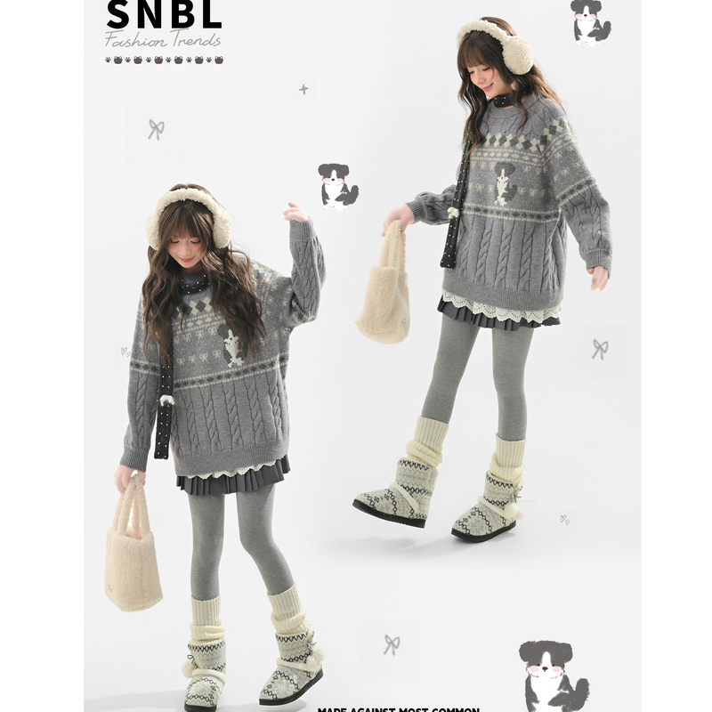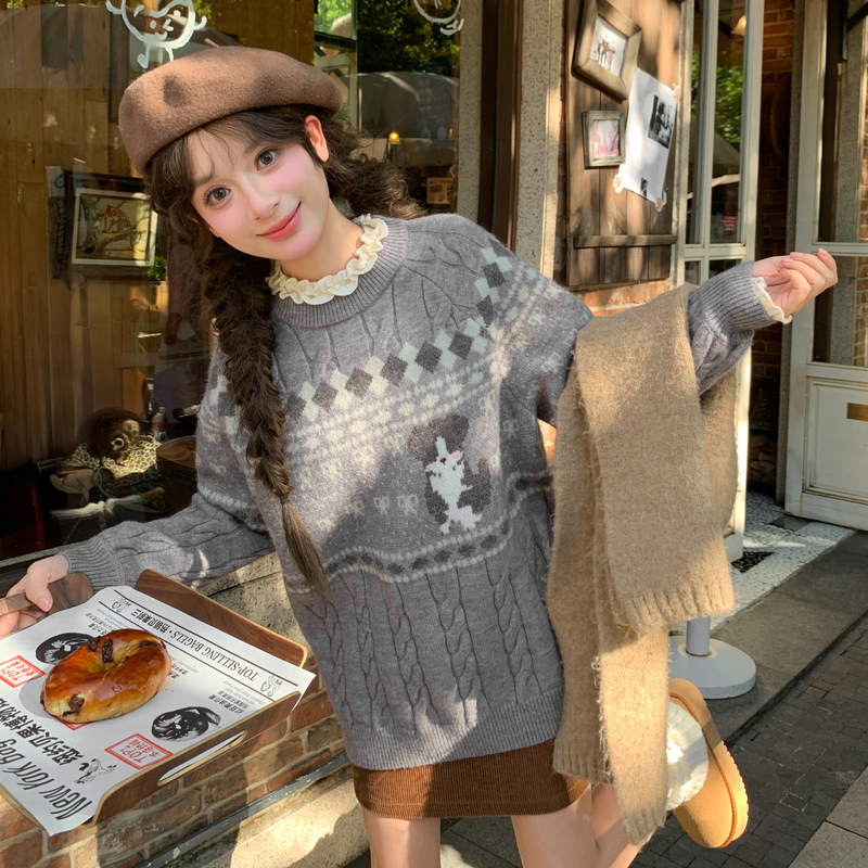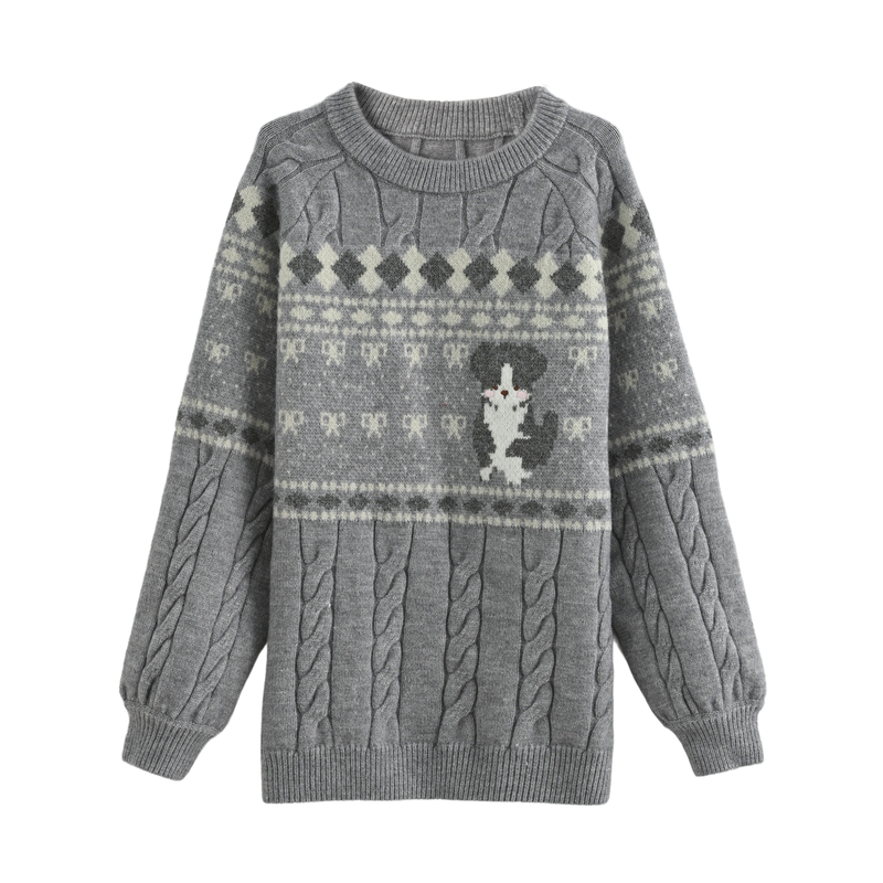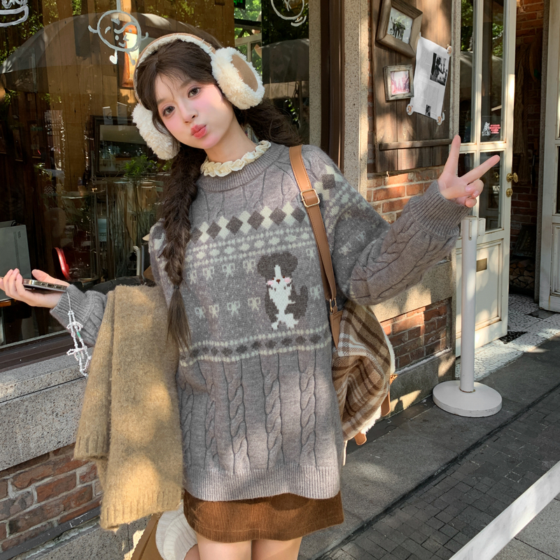 森女部落甜美风宽松套头毛衣女2025新款秋冬小狗提花设计感针织衫 - 森女部落SNBL