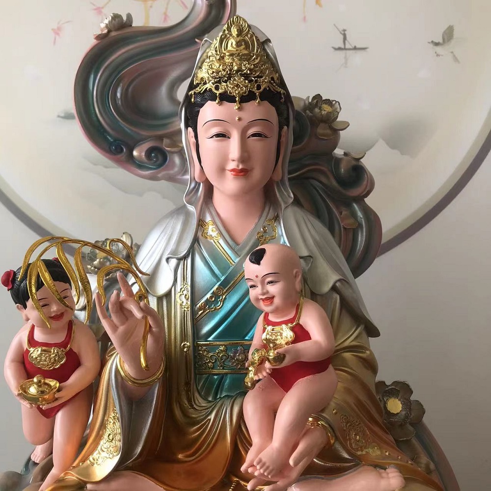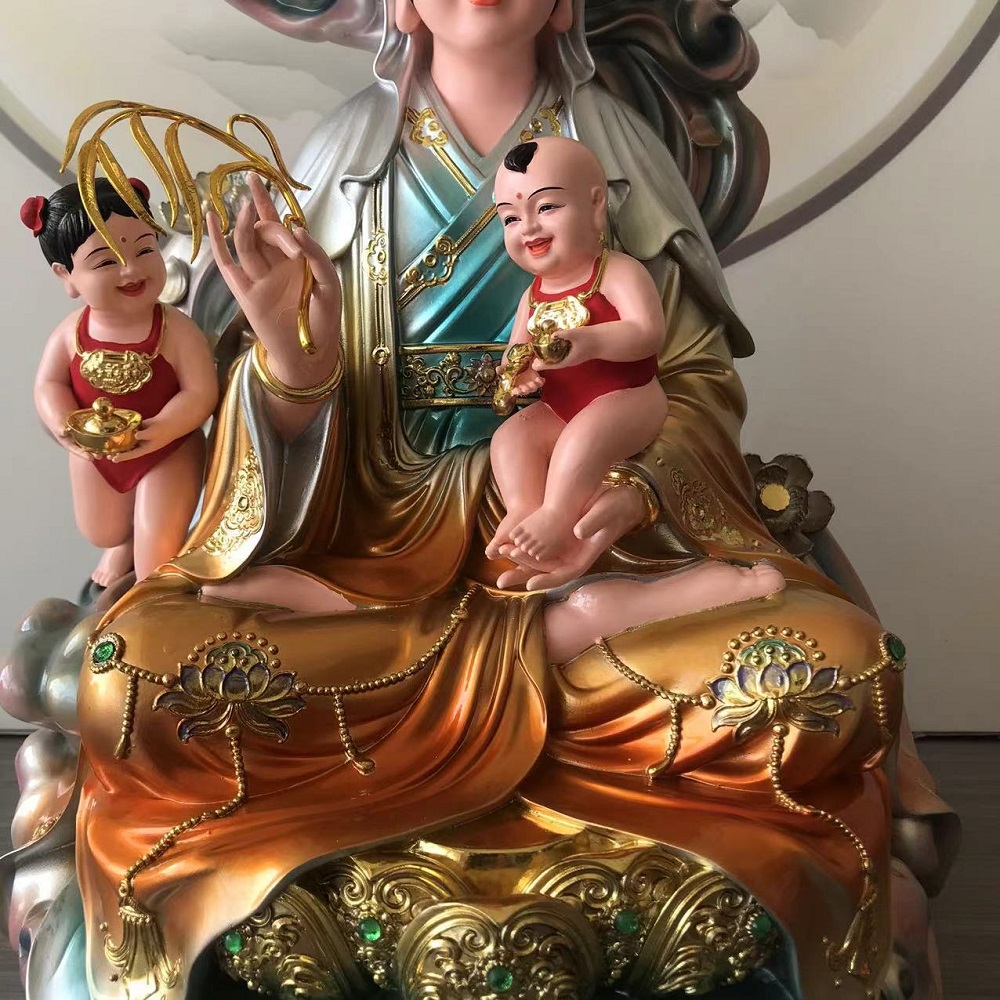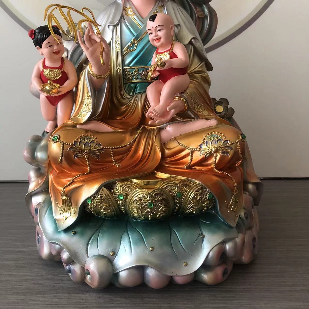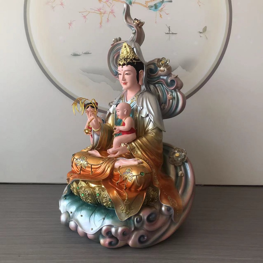 彩绘树脂送子娘娘像送子观音菩萨求龙凤居家供奉神像摆件 - 丰凡佛艺精品