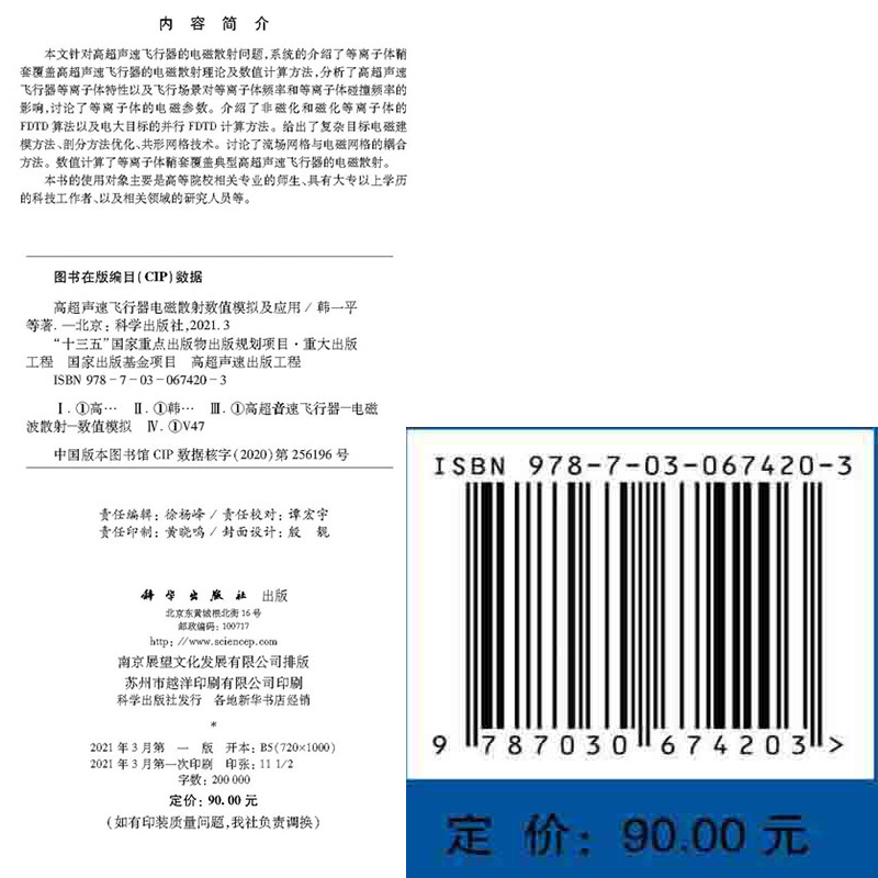 正版全新现货精装高超声速飞行器电磁散射数值模拟及应用 十二五国家重点出版物出版规划项目高超声速出版工程韩一平等科学出版社 - 世纪在线图书专营店