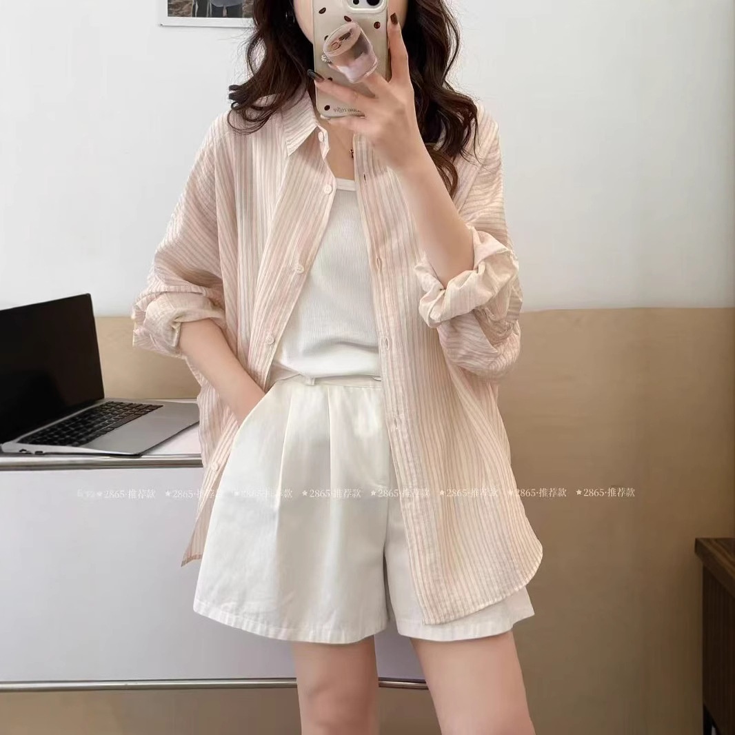 您的位置:他他商城  >   >  25年夏款防晒衣女长袖条纹宽松休闲韩版防晒衣学院风上衣外套防晒