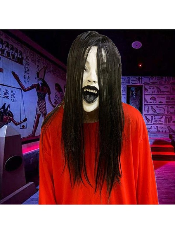 万圣节恐怖面具NPC女贞子鬼脸流血乳胶头套密室鬼屋装扮服饰道具 - 悦空精品店