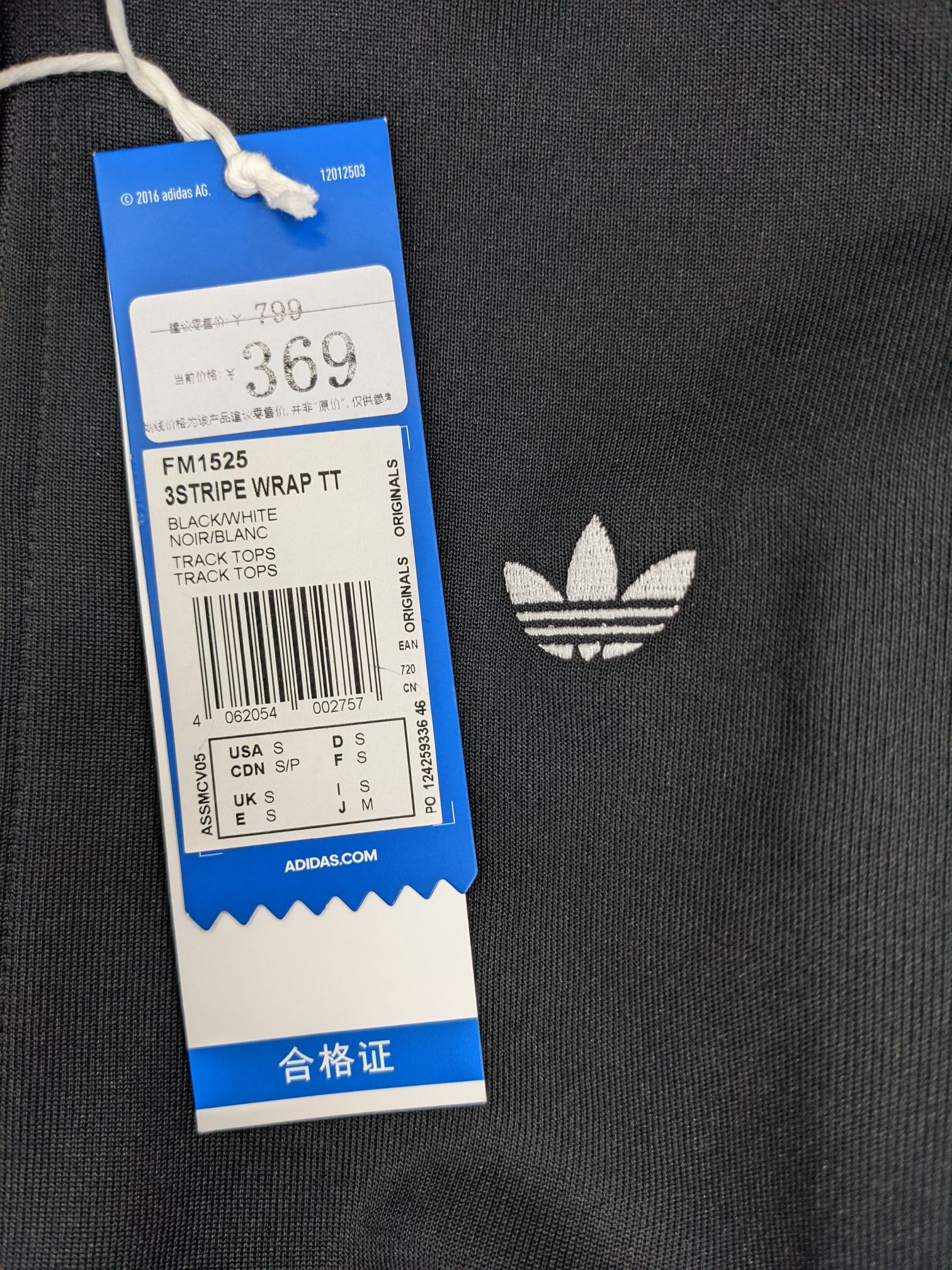 三叶草 adidas 3 STRIPE WRAP TT 男子斜三条纹休闲外套 FM1525