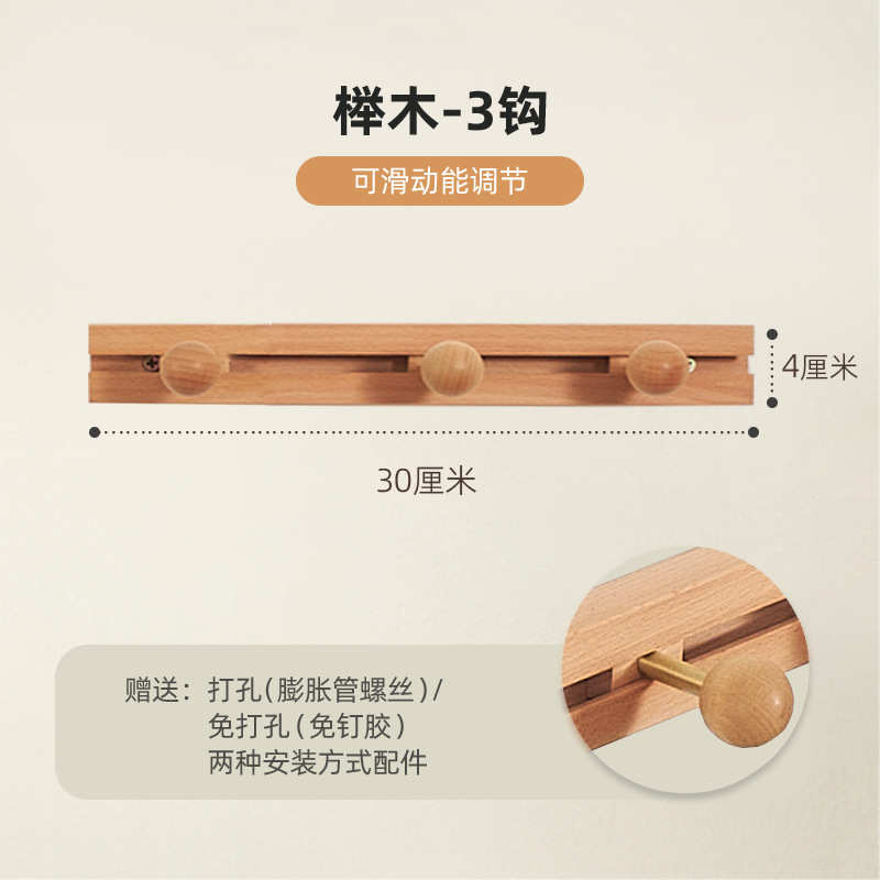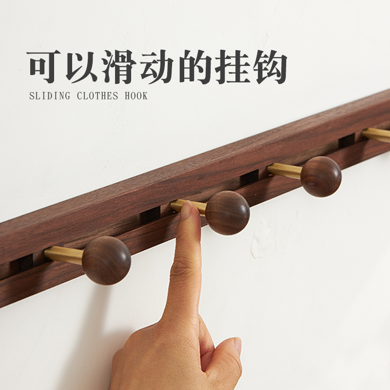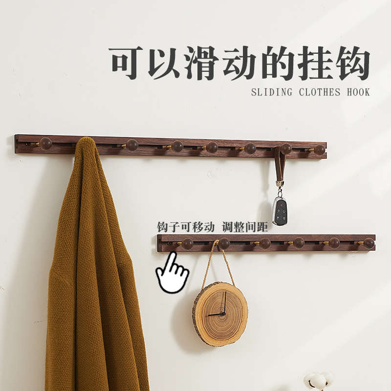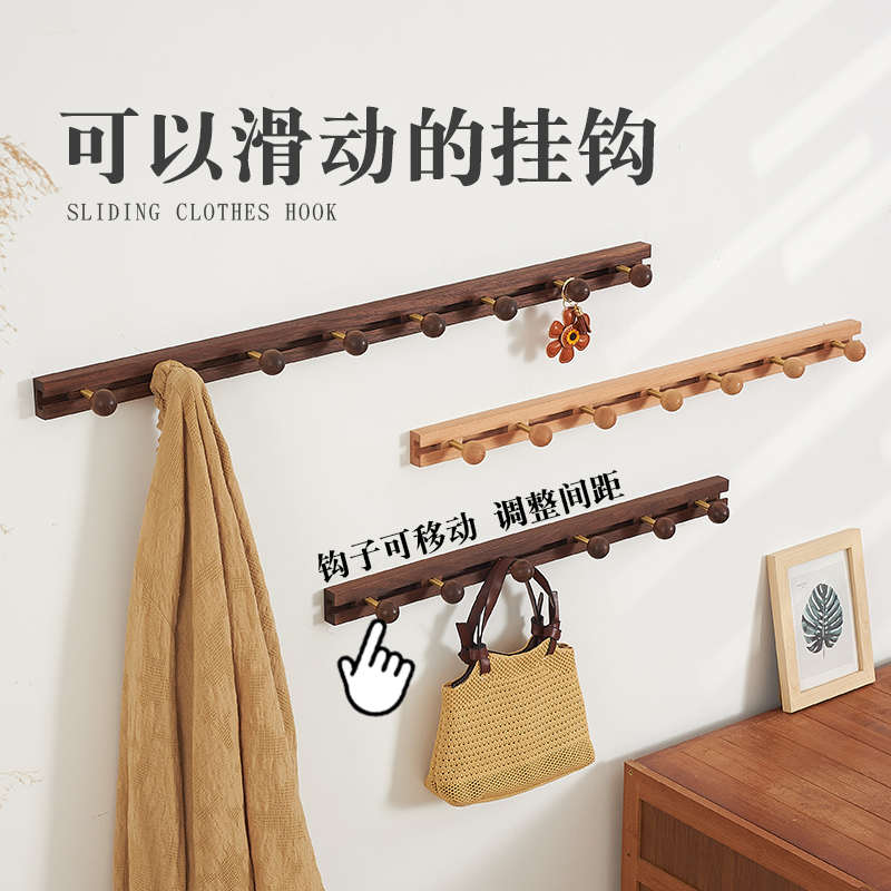 您的位置:他他商城  >   >  滑动实木衣服挂钩免打孔门后挂衣架墙上壁挂入户玄关一排式衣帽钩