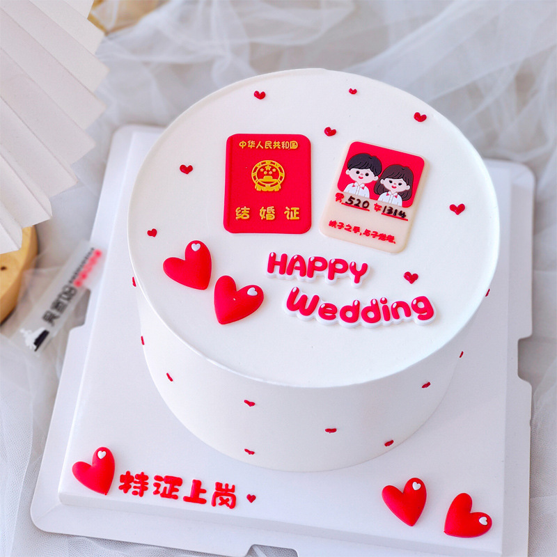 ins网红领证结婚证蛋糕装饰摆件情侣执子之手与子偕老订婚纪念日 - 咖咖熊烘焙装饰批发