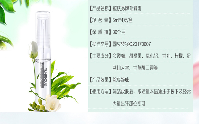 植肤秀狐臭净味水男女止汗香体腋臭喷雾 5ml*4狐臭喷雾