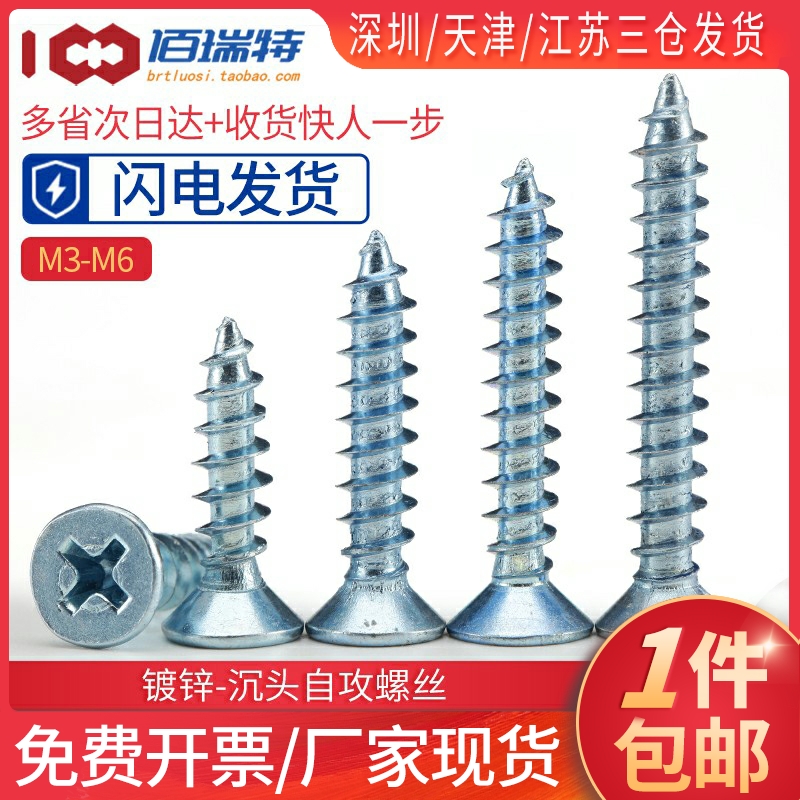 高强度加硬镀蓝白锌沉头自攻螺丝平头十字螺钉木牙螺丝钉M3M4M5M6 - 佰瑞特工厂官方店