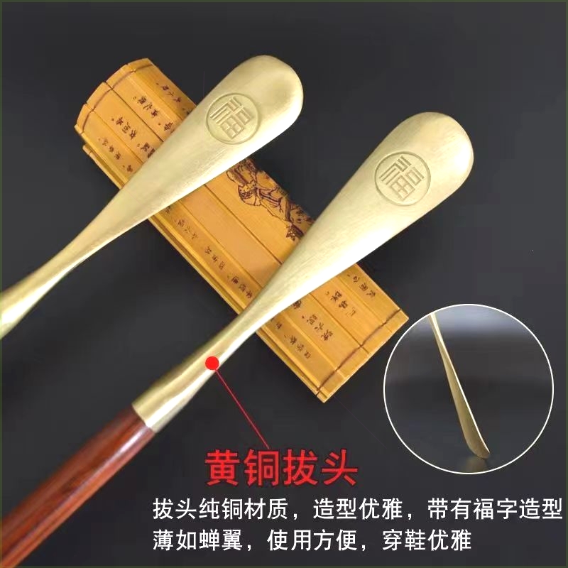 您的位置:他他商城  >   >  超长鞋拔子提鞋器紫檀红木铜拔子铜鞋抽实木长柄穿鞋神器老人家用
