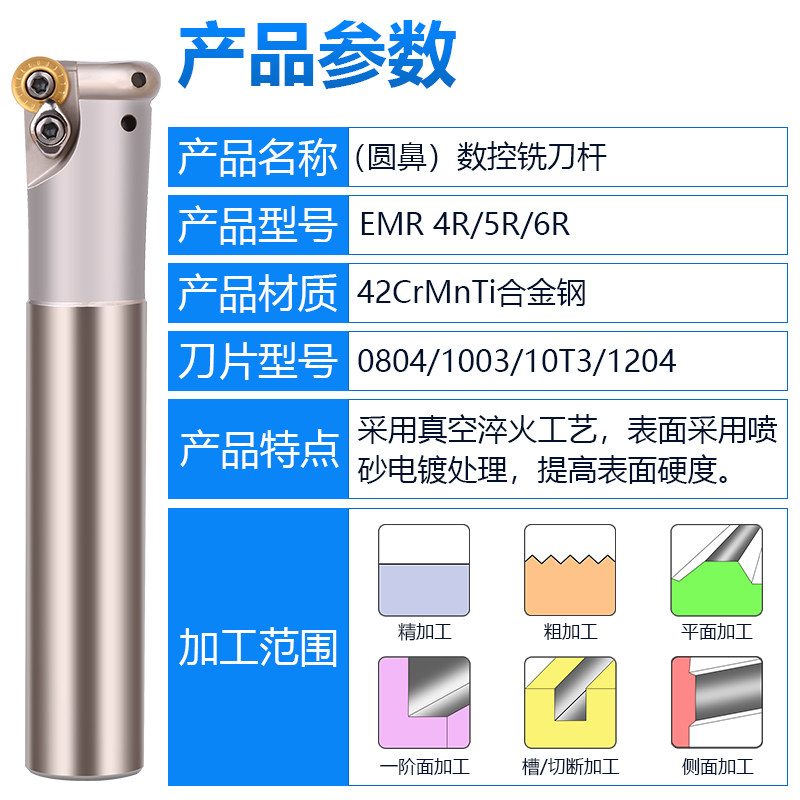 数控加工中心圆鼻铣刀杆R6抗震加硬加长EMR 20 25 32 35 40刀头 - 内蒙古蒙餐