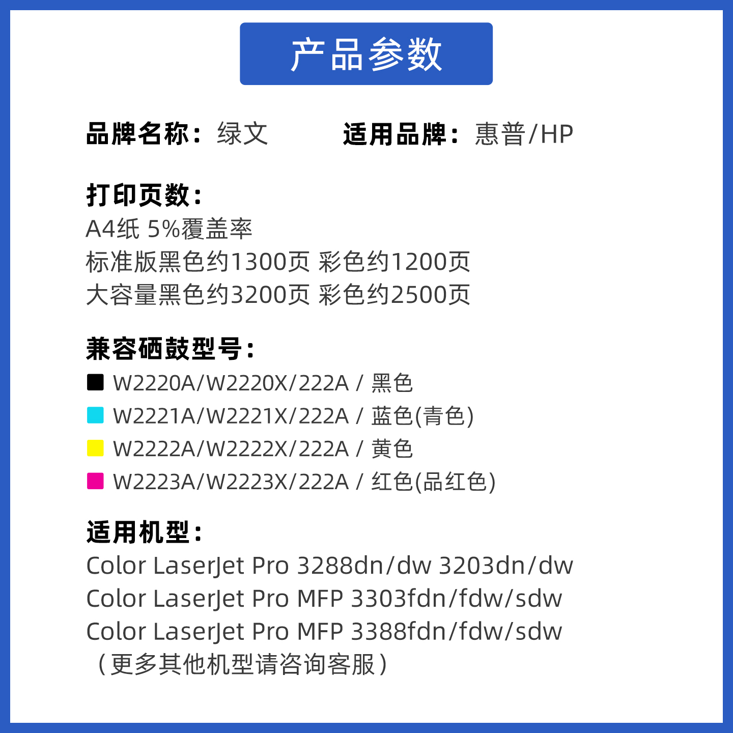 绿文W2220A适用惠普3388sdw硒鼓Laserjet 3303sdw 3203dw/dn 3288dw打印机MFP3388fdn/fdw粉盒W2220/222a墨盒 - 绿文旗舰店