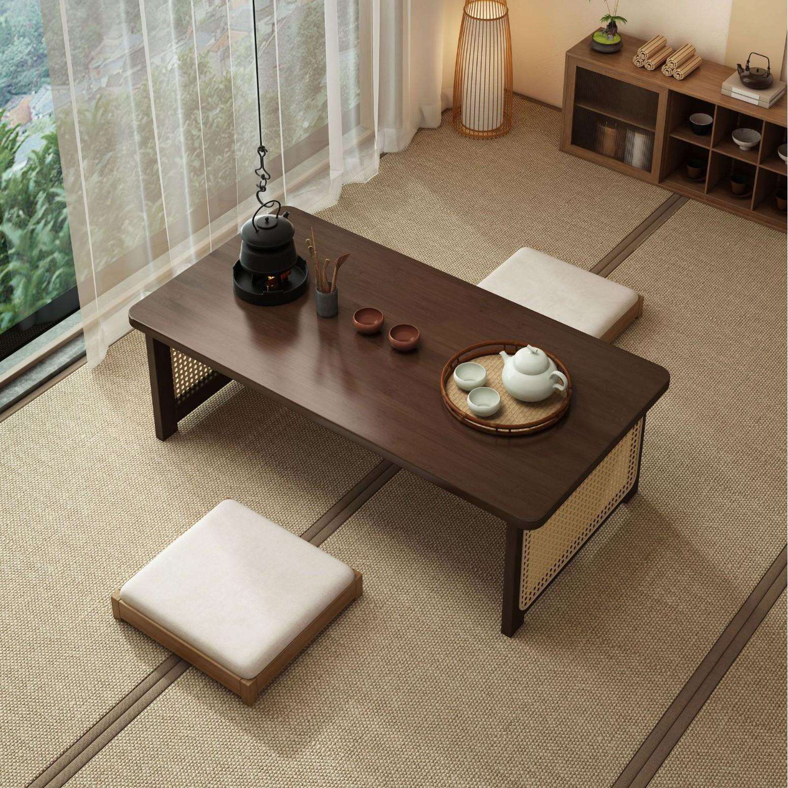折叠木藤编飘窗桌家用榻榻米坐地小矮桌子新中式实木炕桌小茶几 - 聚货园商贸城的小店15