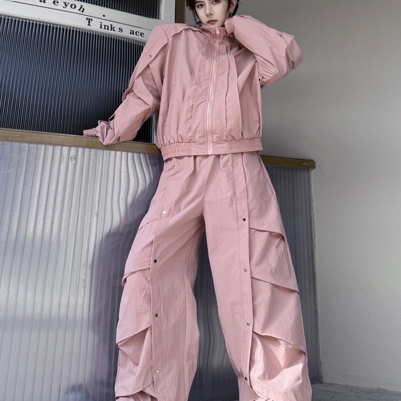 2024春季时尚小众结构设计感立领夹克男层次皱褶阔腿长裤两件套潮 - 世耀严选店