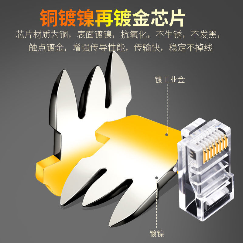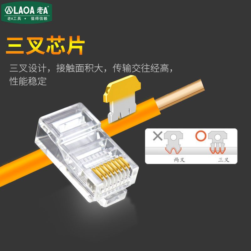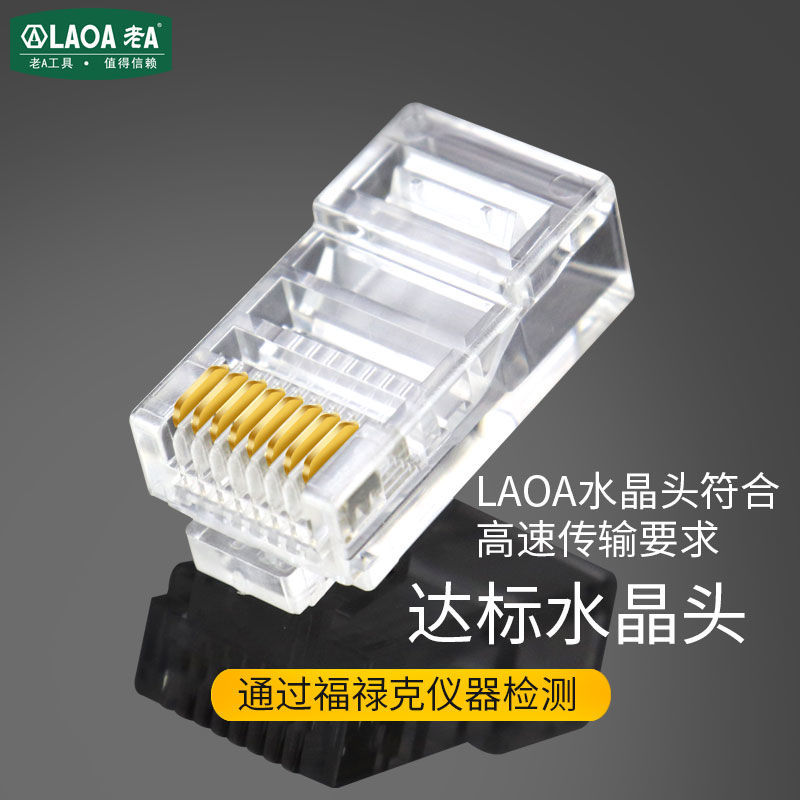 老A 工程用网线水晶头超五类8P 6P镀金rj45铜芯电脑网络线接头 - 老A拓驰五金工具