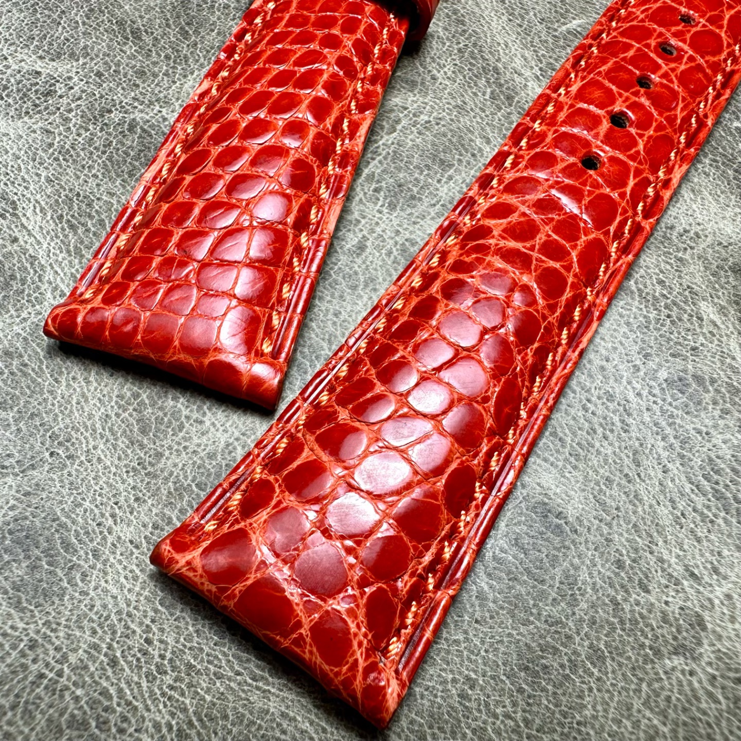 只有几条,特价品22mm毫米桔色美洲鳄鱼皮圆纹表带小牛皮底 - royal1875