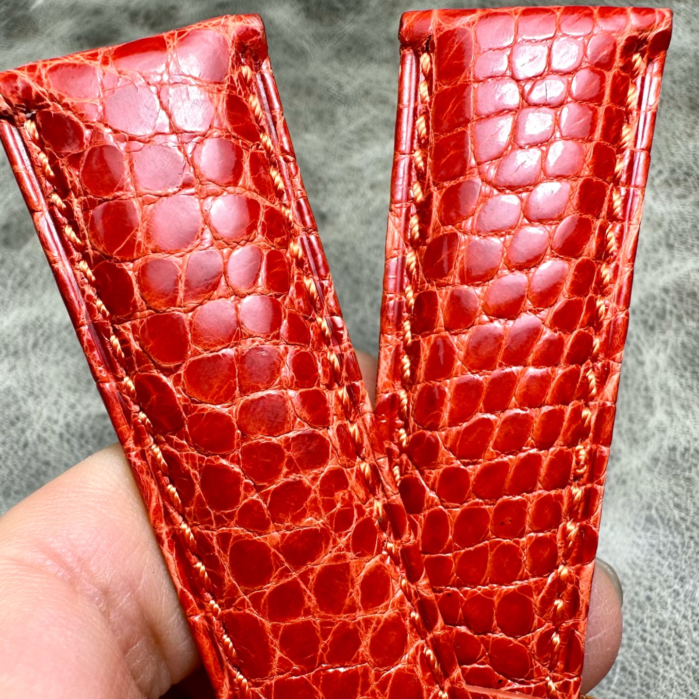 只有几条,特价品22mm毫米桔色美洲鳄鱼皮圆纹表带小牛皮底