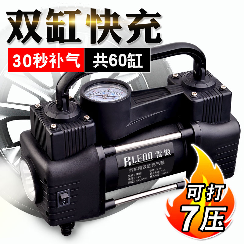 雷傲12V车载充气泵双缸高压便携式小轿车轮胎汽车用打气泵筒电动 - 浅韵设计馆01