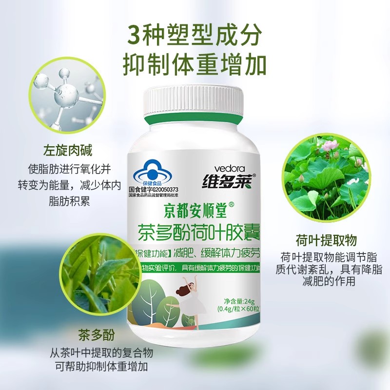 京都安顺堂茶多酚荷叶胶囊【官方正品】大肚腩神器掉秤暴饮暴食 - 元初堂保健食品店
