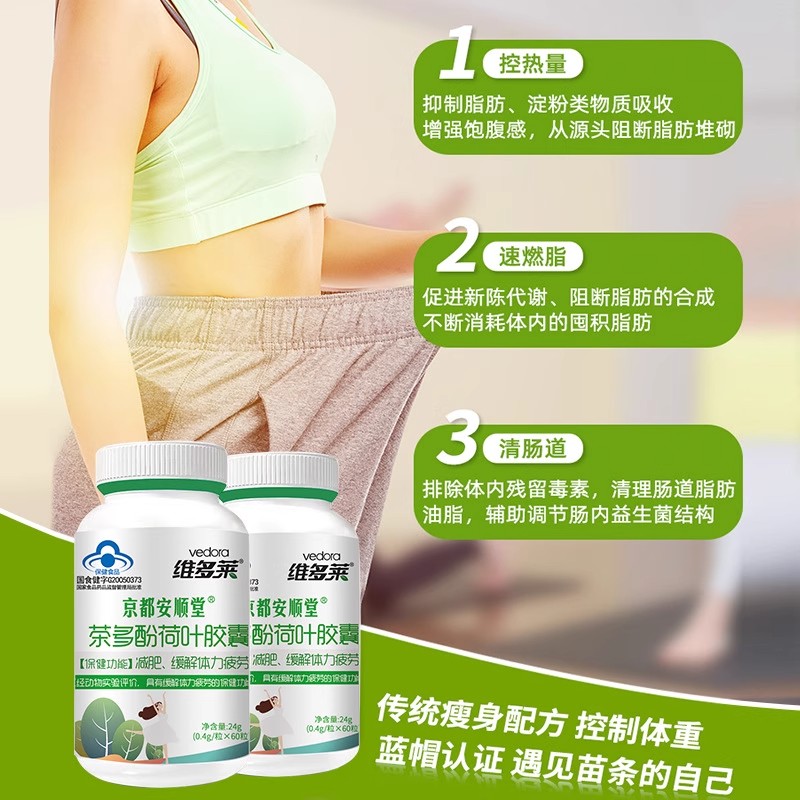 京都安顺堂茶多酚荷叶胶囊【官方正品】大肚腩神器掉秤暴饮暴食