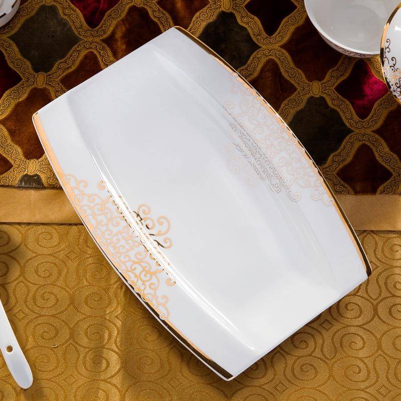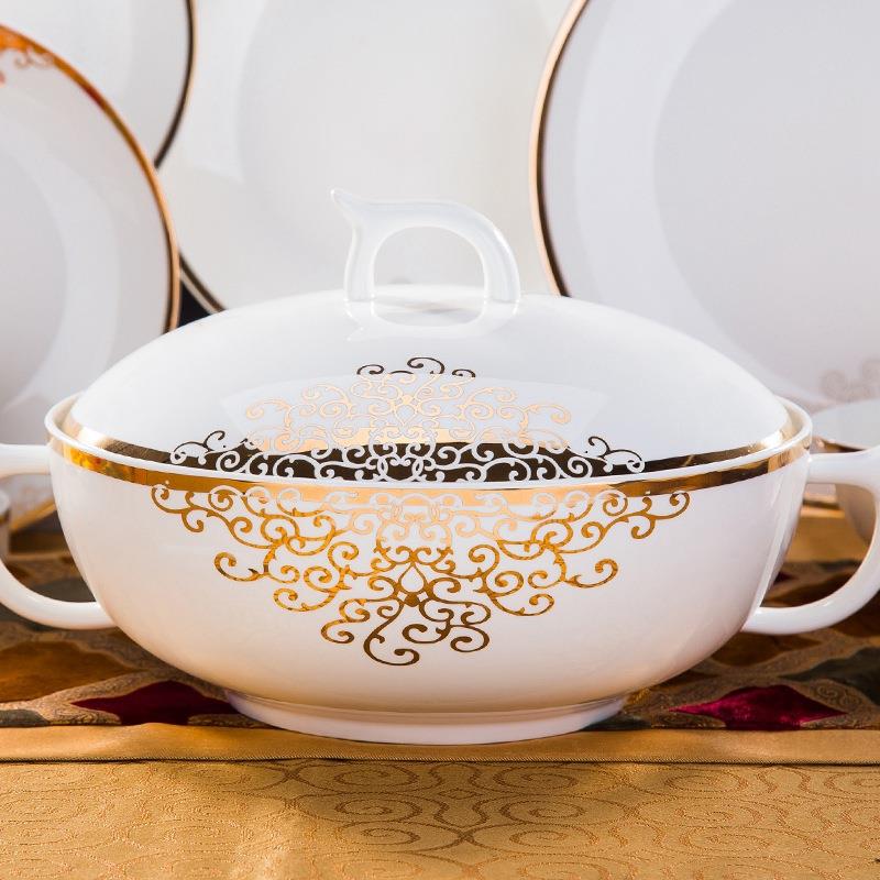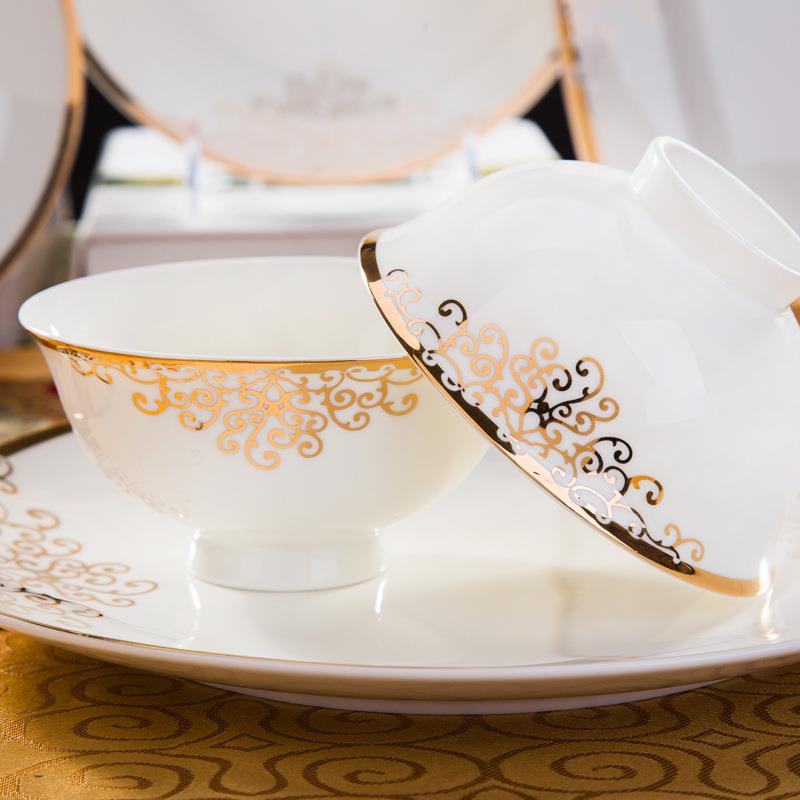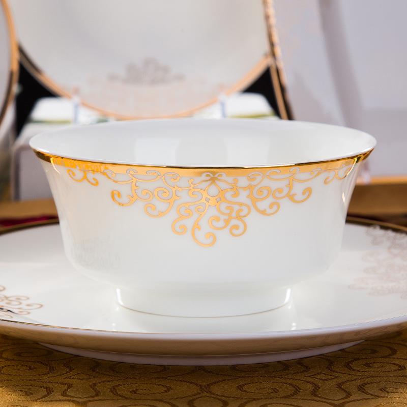 骨瓷餐具套装碗盘碟家用碗筷盘子前程似锦太阳岛60头 - 销售45897945