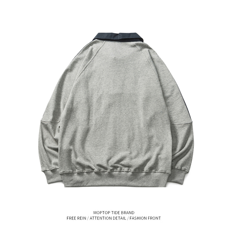 您的位置:他他商城  >   >  日系复古套头卫衣男春秋新款撞色翻领三条杠宽松卫衣半身拉链卫衣