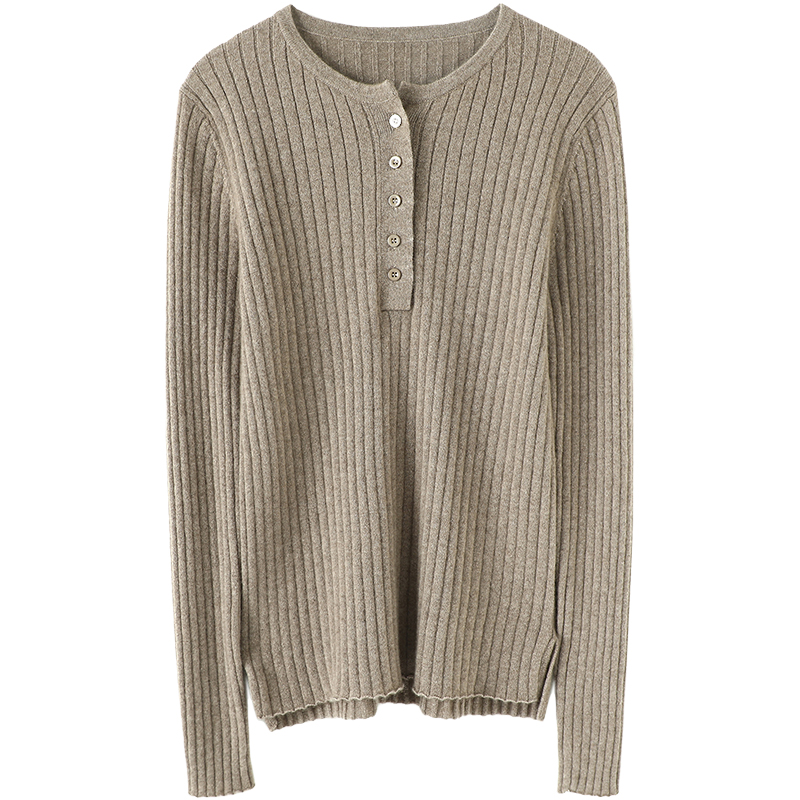 您的位置:他他商城  >  女装  >  启超盖不住气质!纽扣羊绒衫100纯羊绒女毛衣坑条针织打底衫秋冬