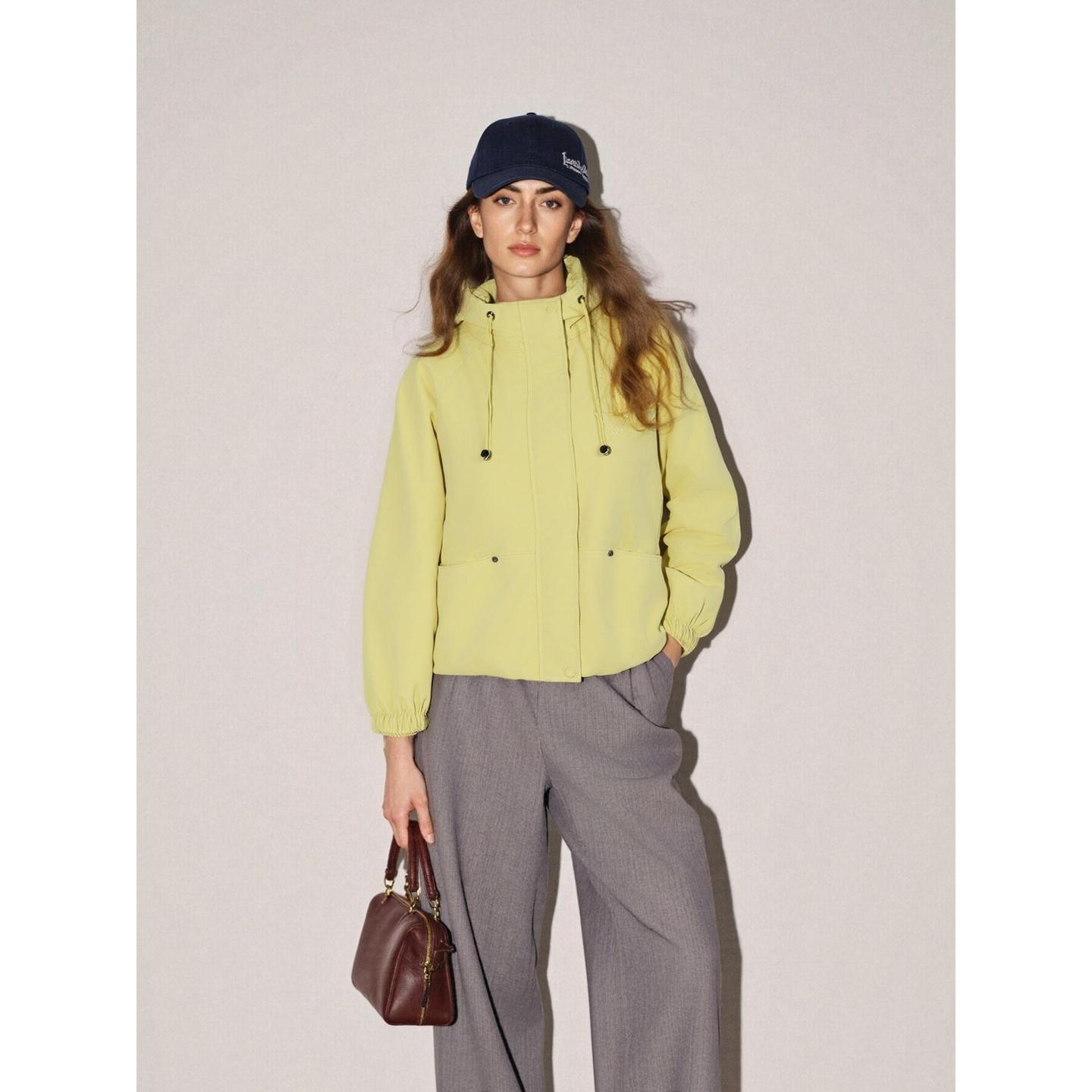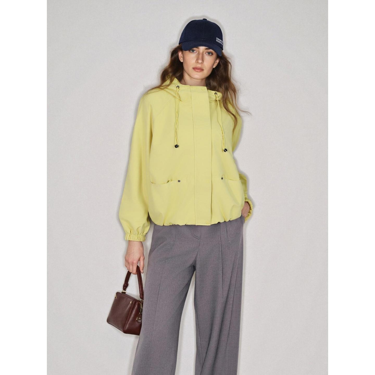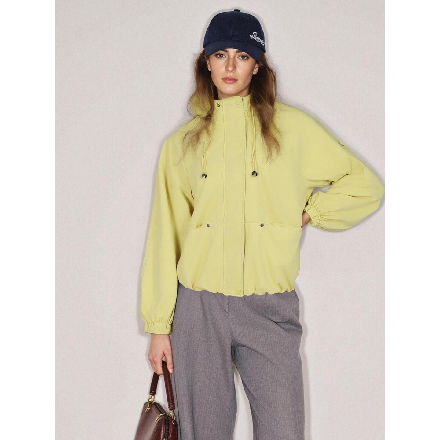 Basic House/百家好多巴胺黄色工装外套女2025秋冬新款立领运动服