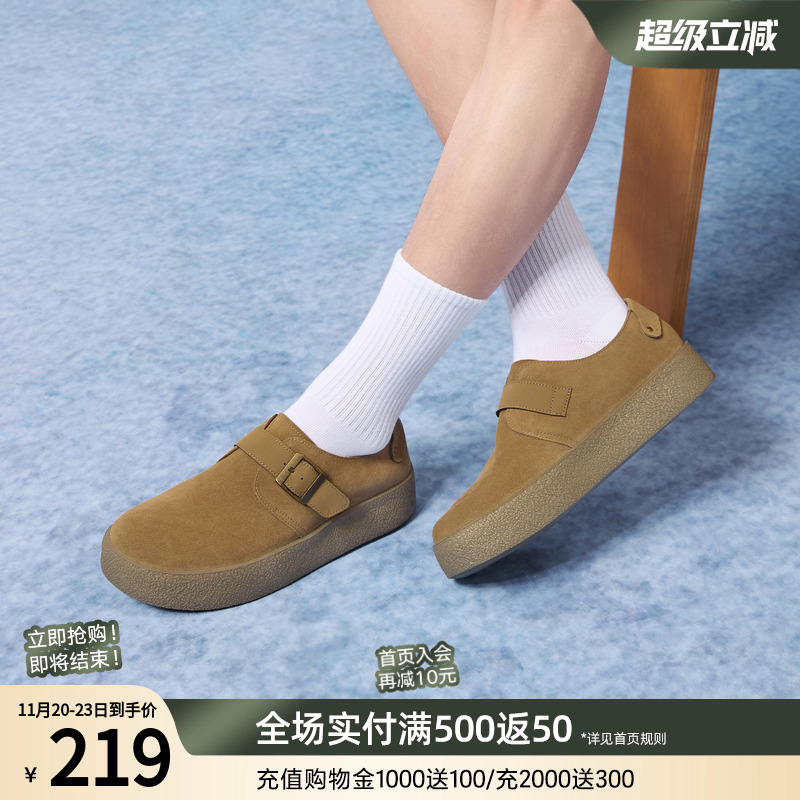 百思图2025秋季新款复古懒人一脚蹬勃肯鞋休闲厚底男单鞋FCP01CM5 - 百思图男鞋旗舰店